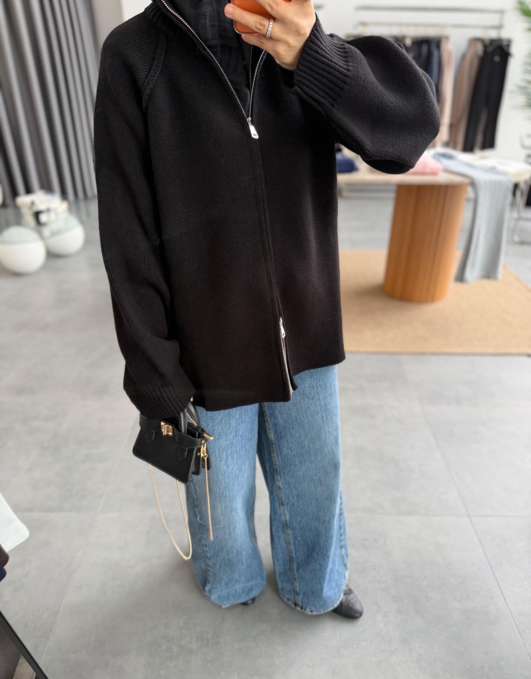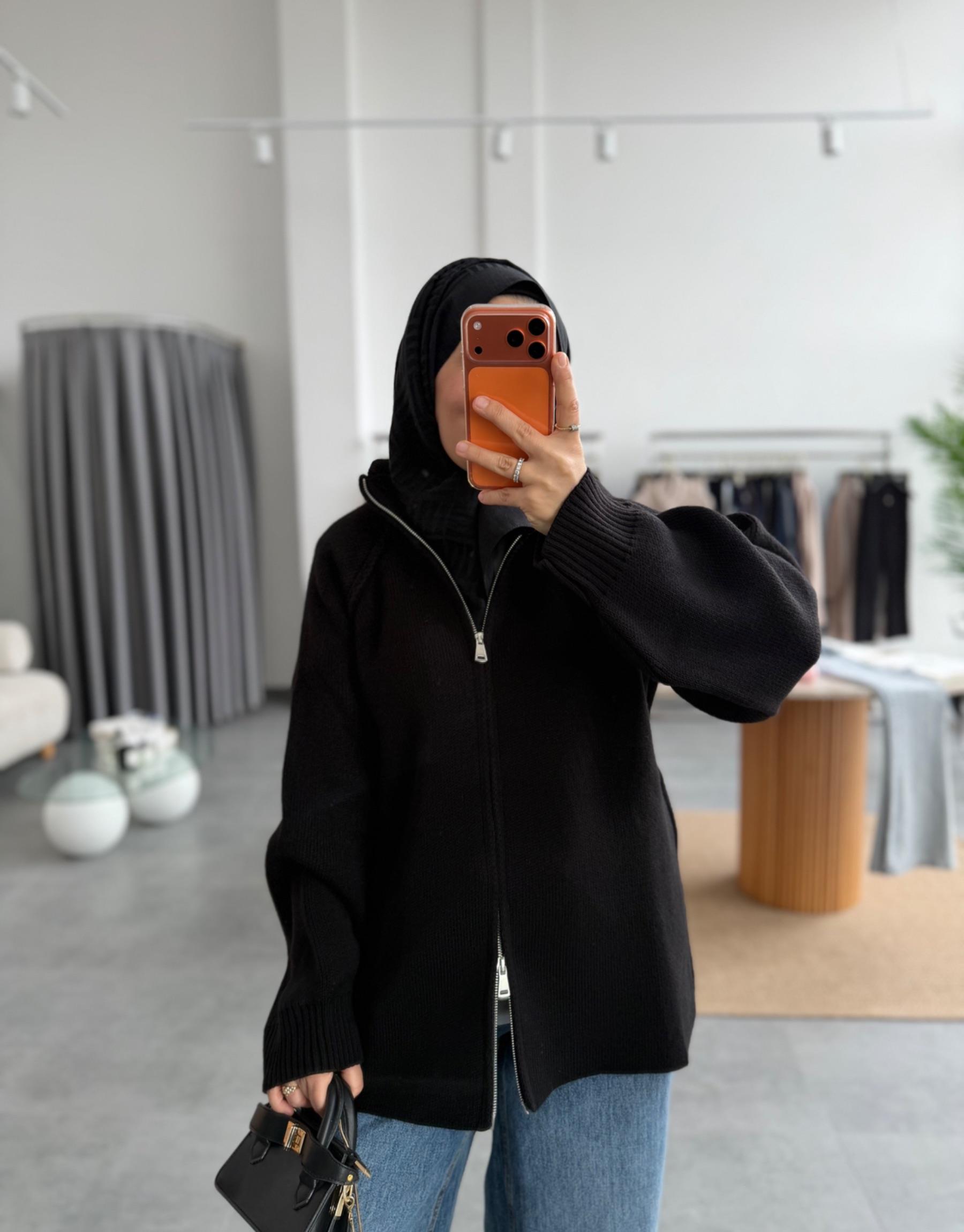 Yağ Yeşili Çift Fermuarlı Triko Hırka