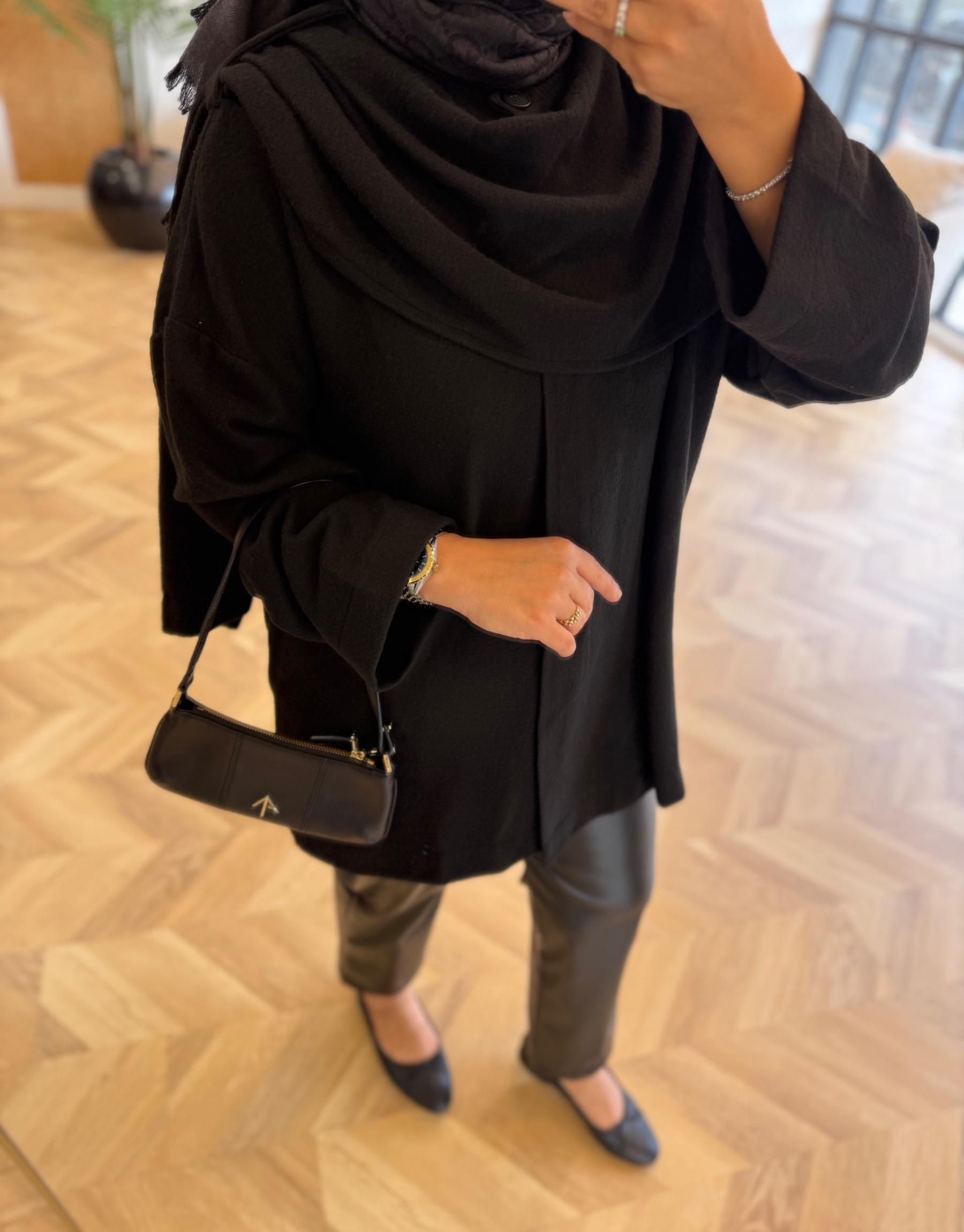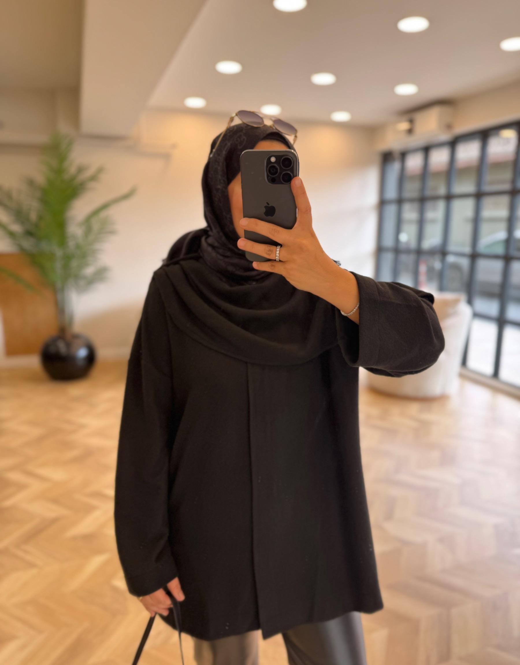 Siyah Şal Kapama Detaylı Hırka