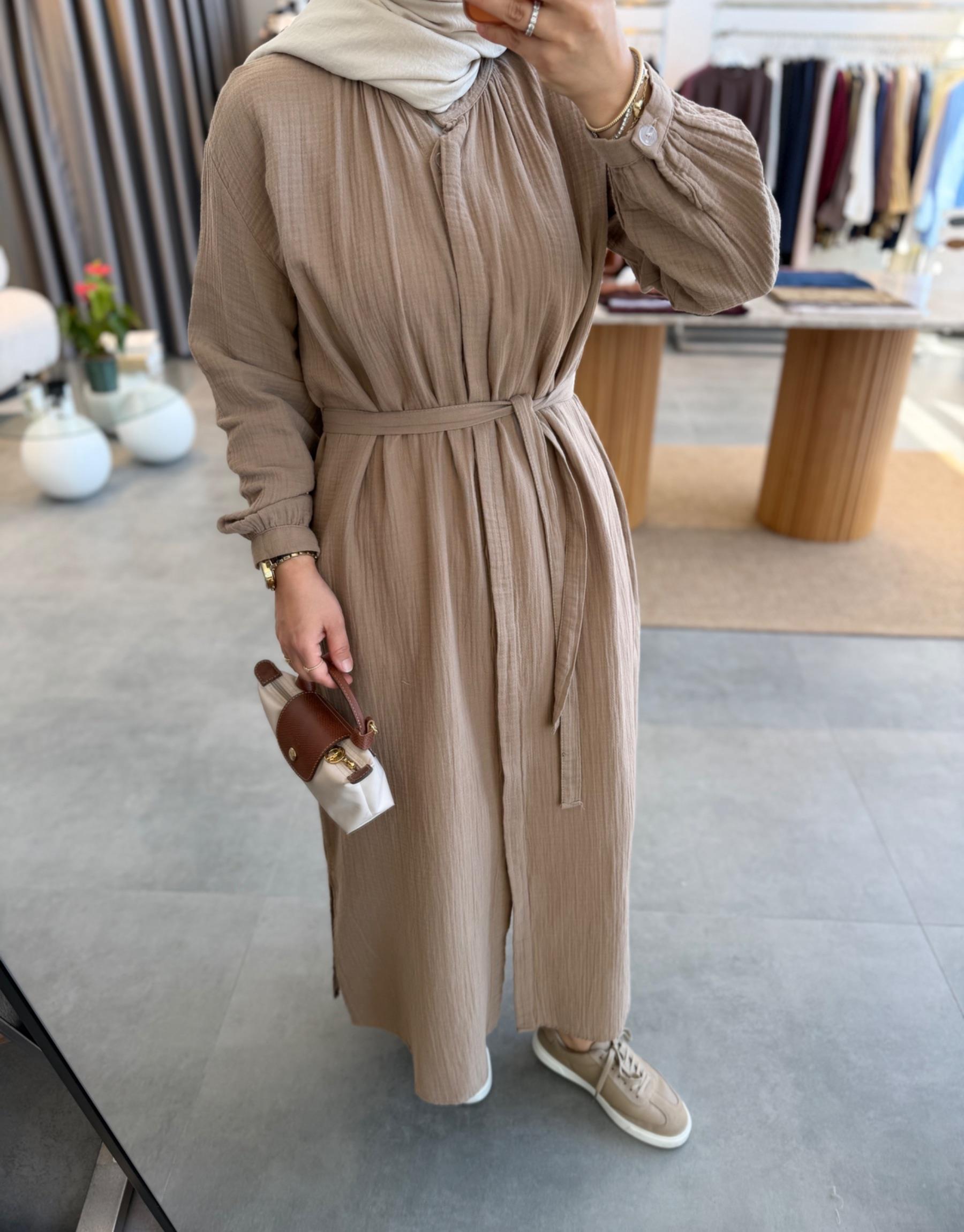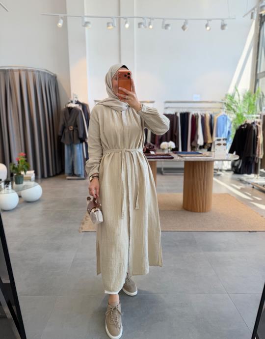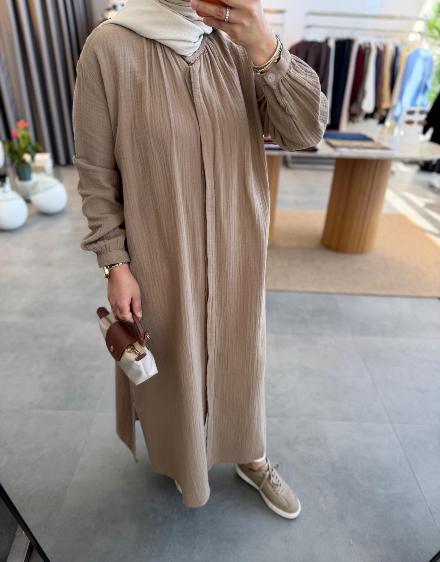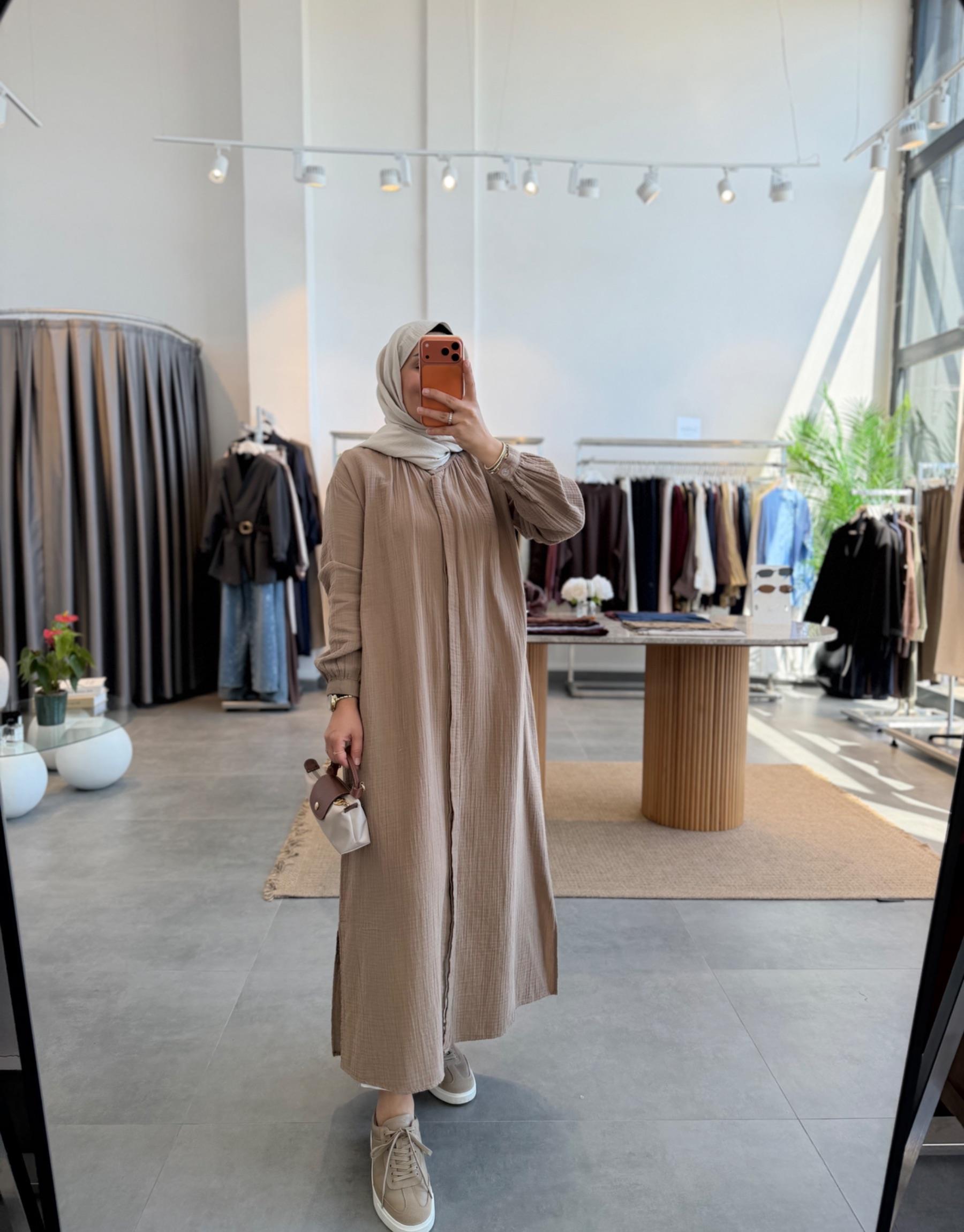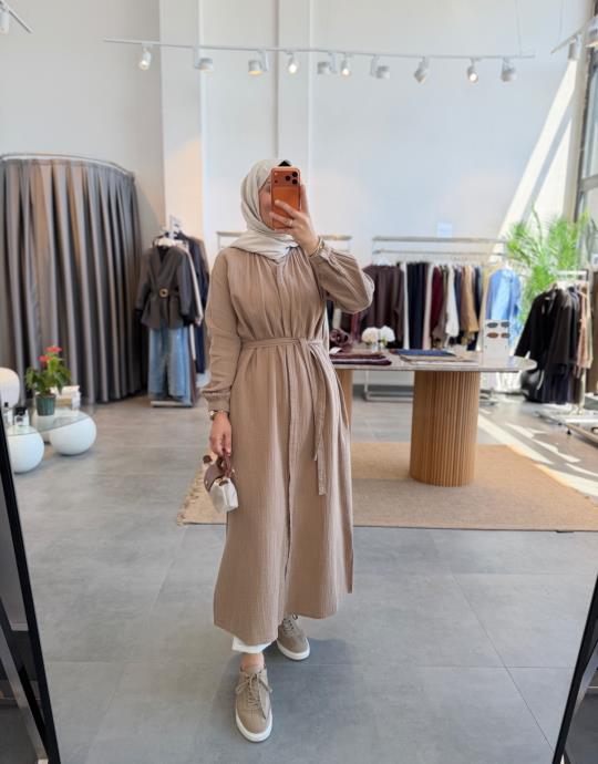 tesettur giyim Sütlü Kahve Müslin Araboy Gömlek Tunik Butiköz