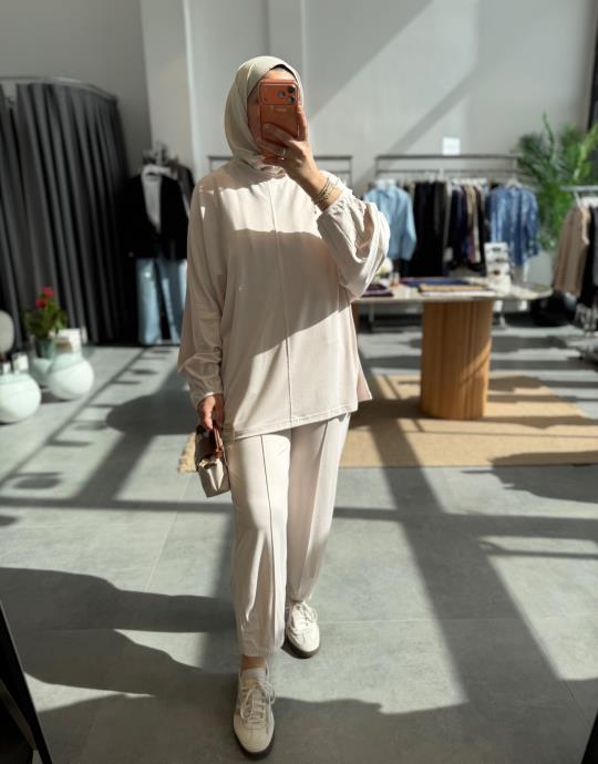 Haki Nervür Detaylı Pantolonlu Takım