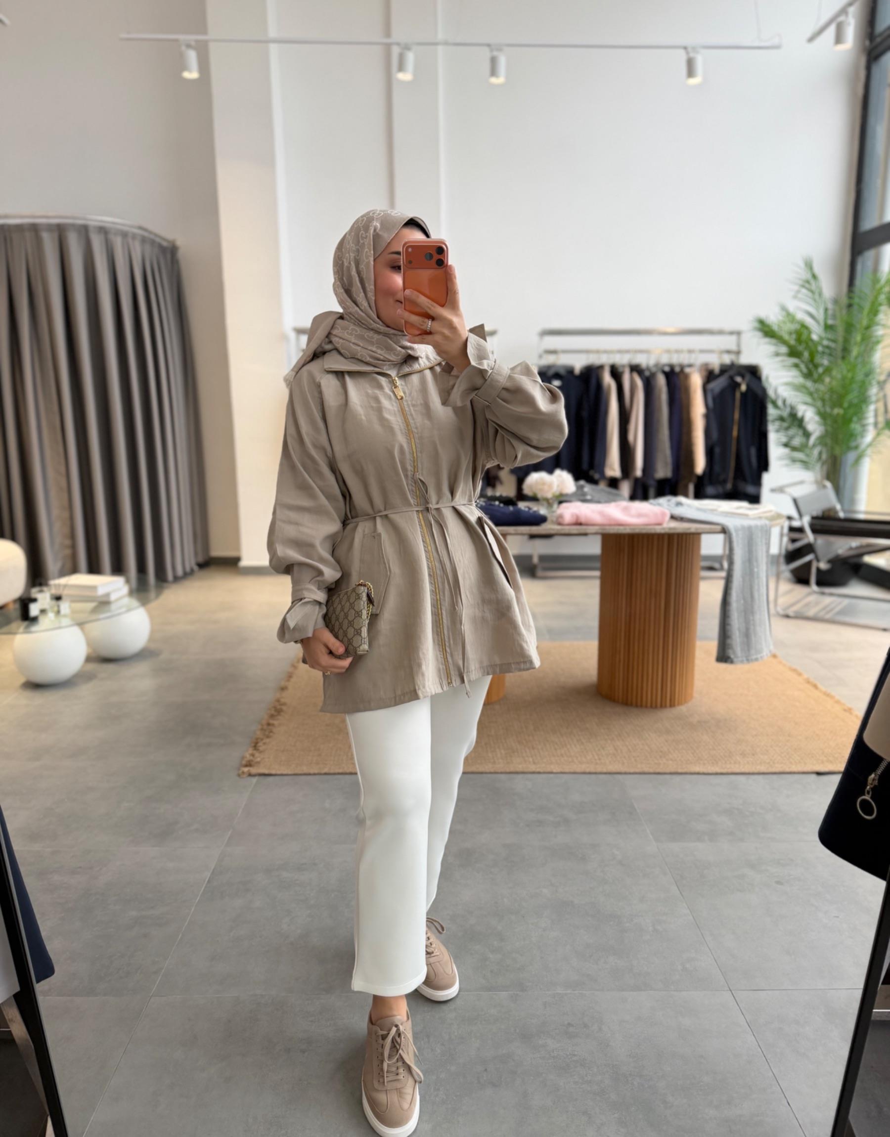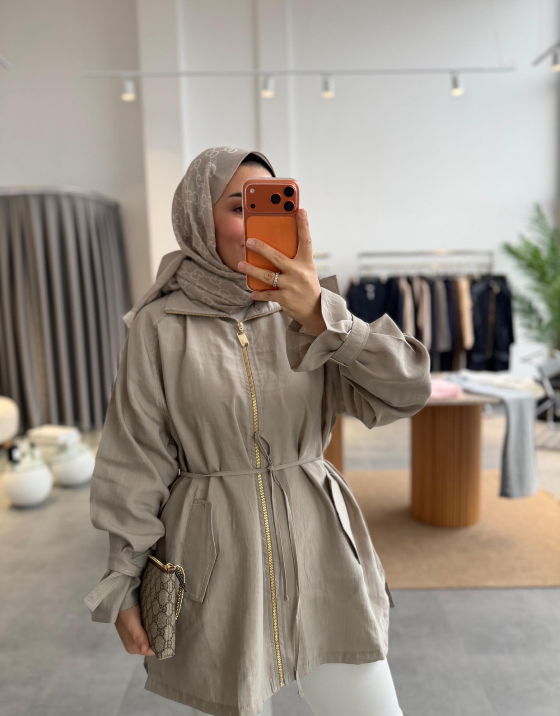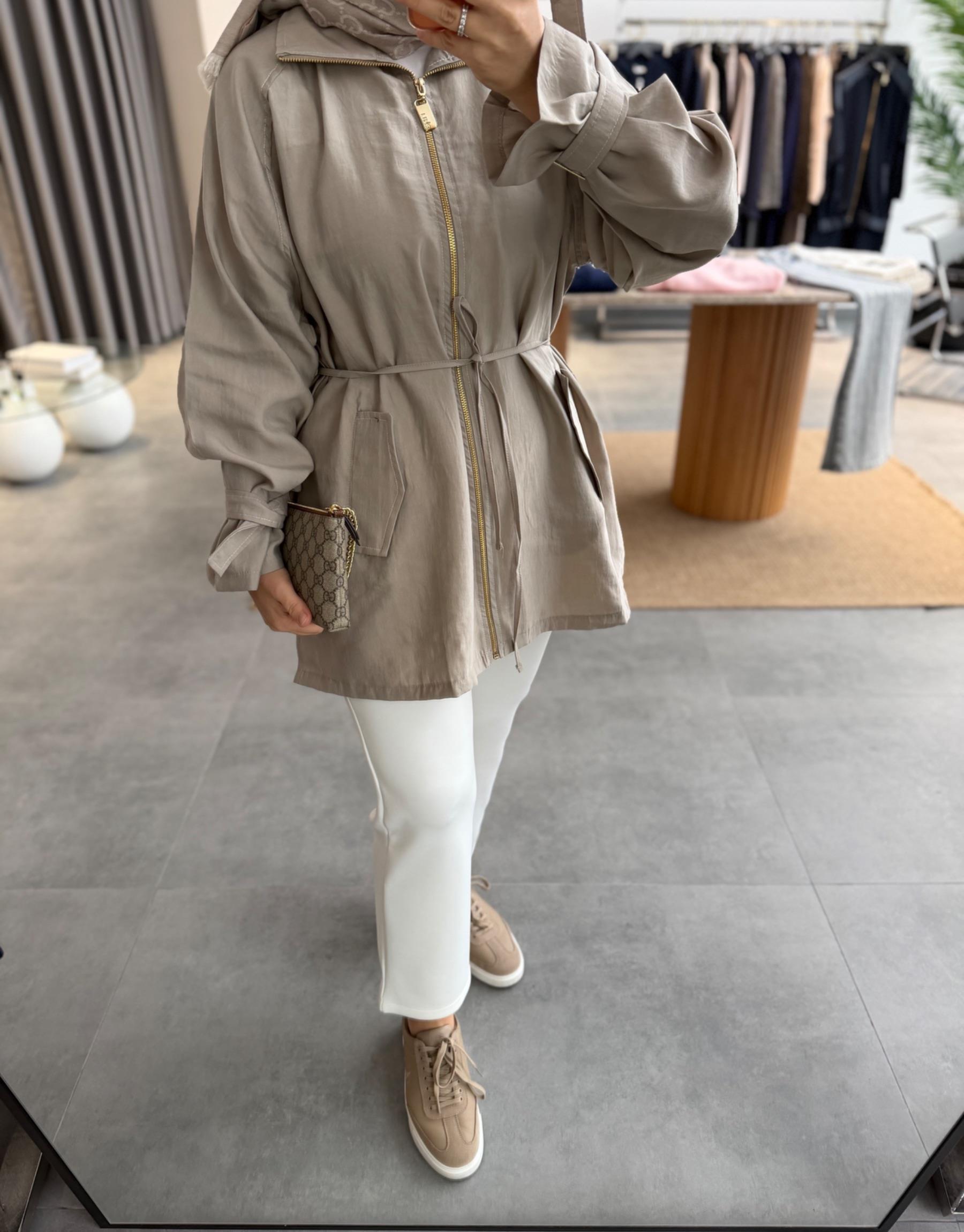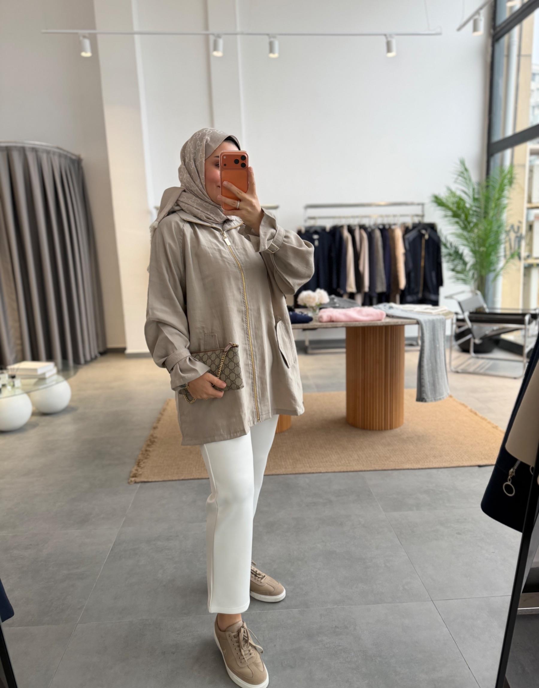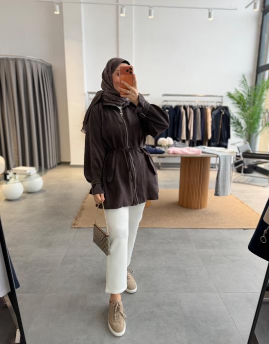 Kahve Apolet Detaylı Fermuarlı Ceket