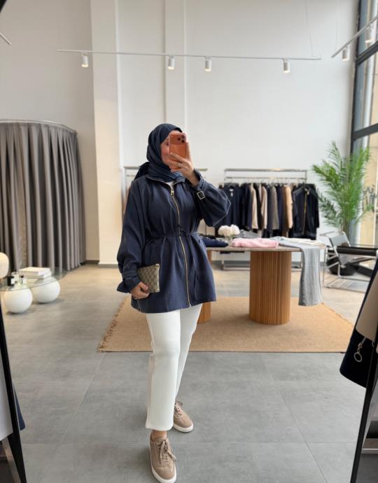 Lacivert Apolet Detaylı Fermuarlı Ceket