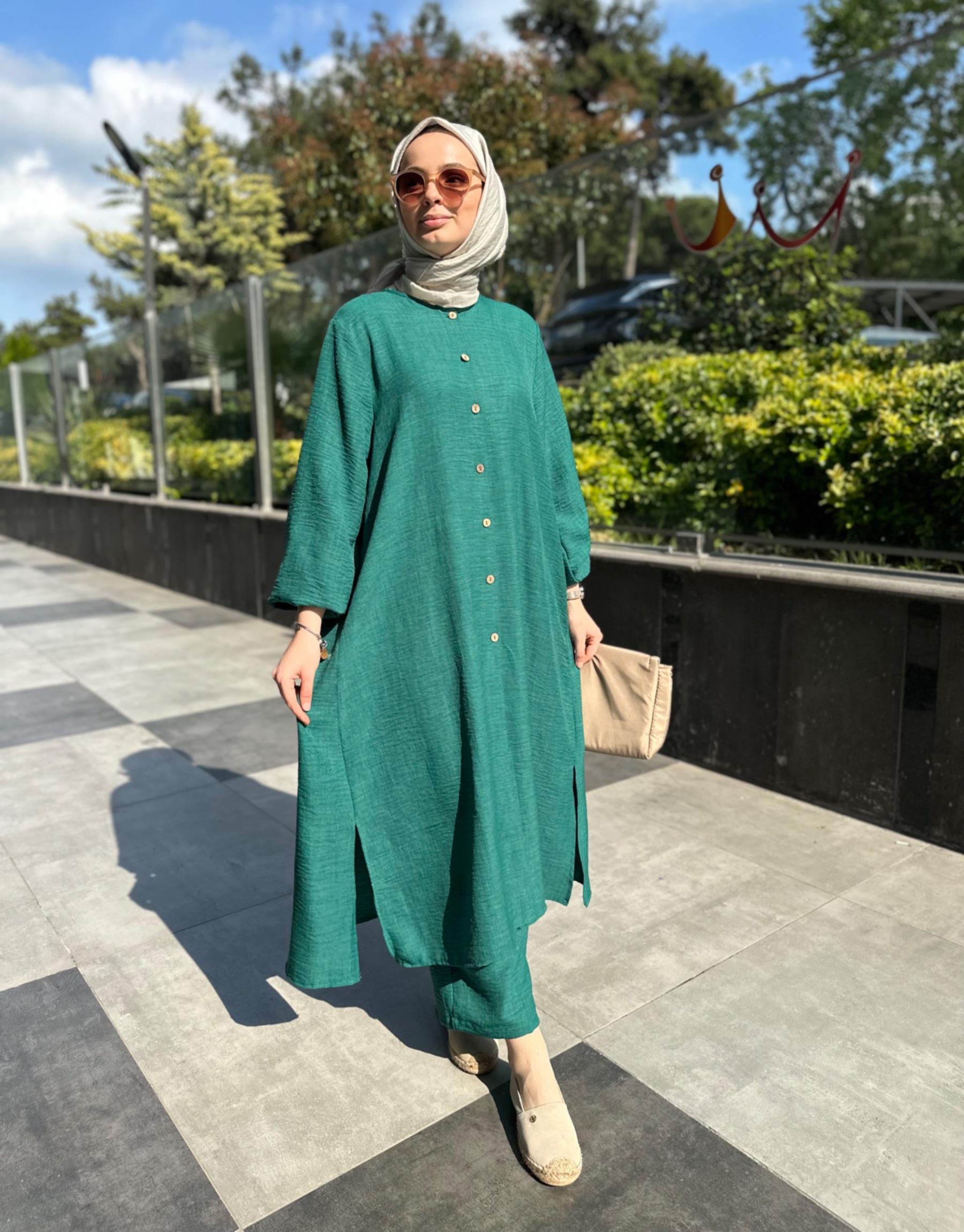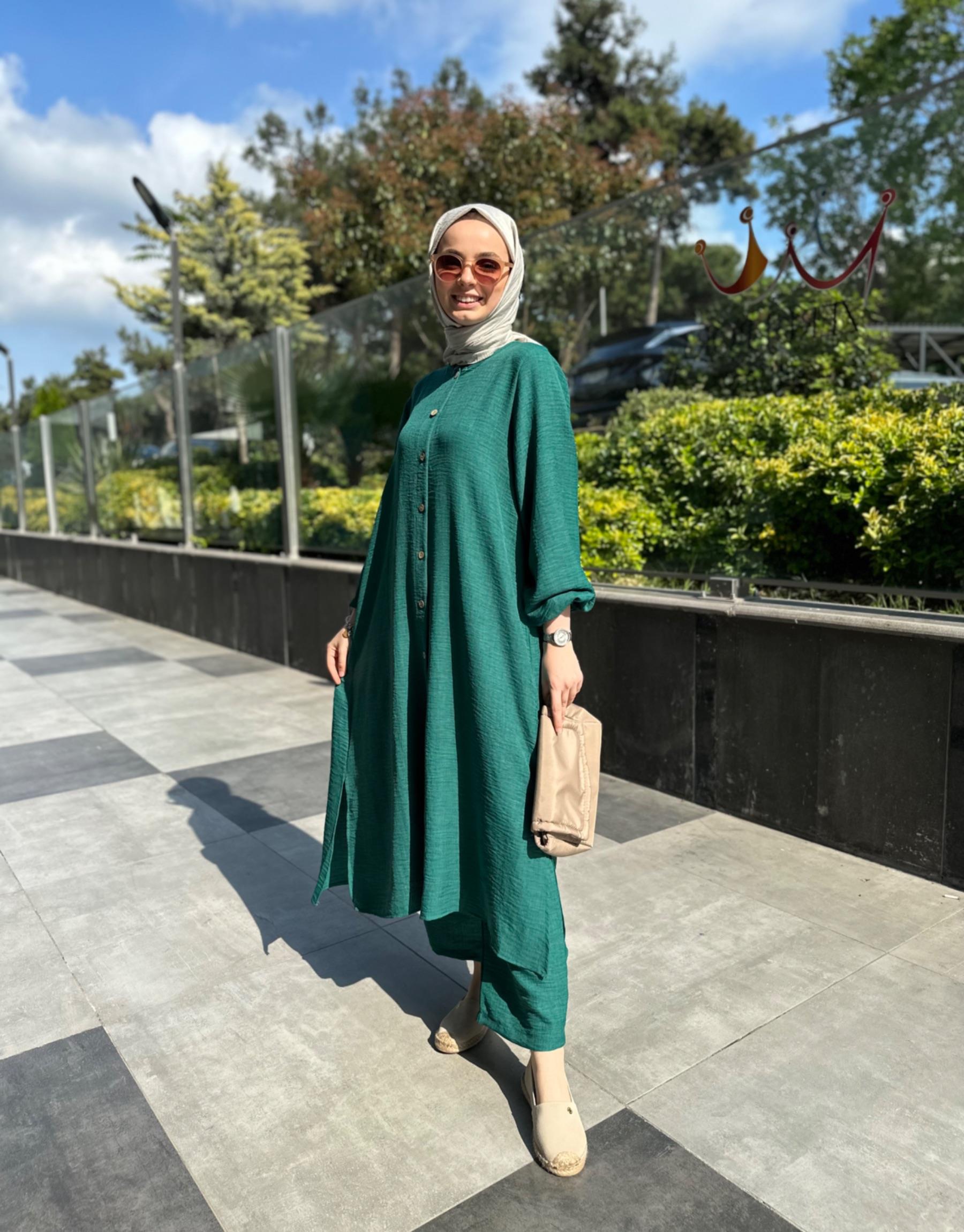 tesettur giyim Zümrüt Yeşil 4179 İkili Takım Butiköz