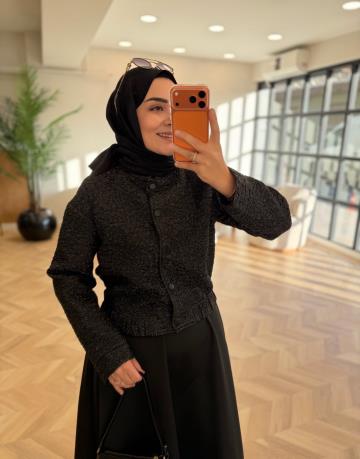 Siyah Kol Pile Detaylı Oversize Sweatshırt