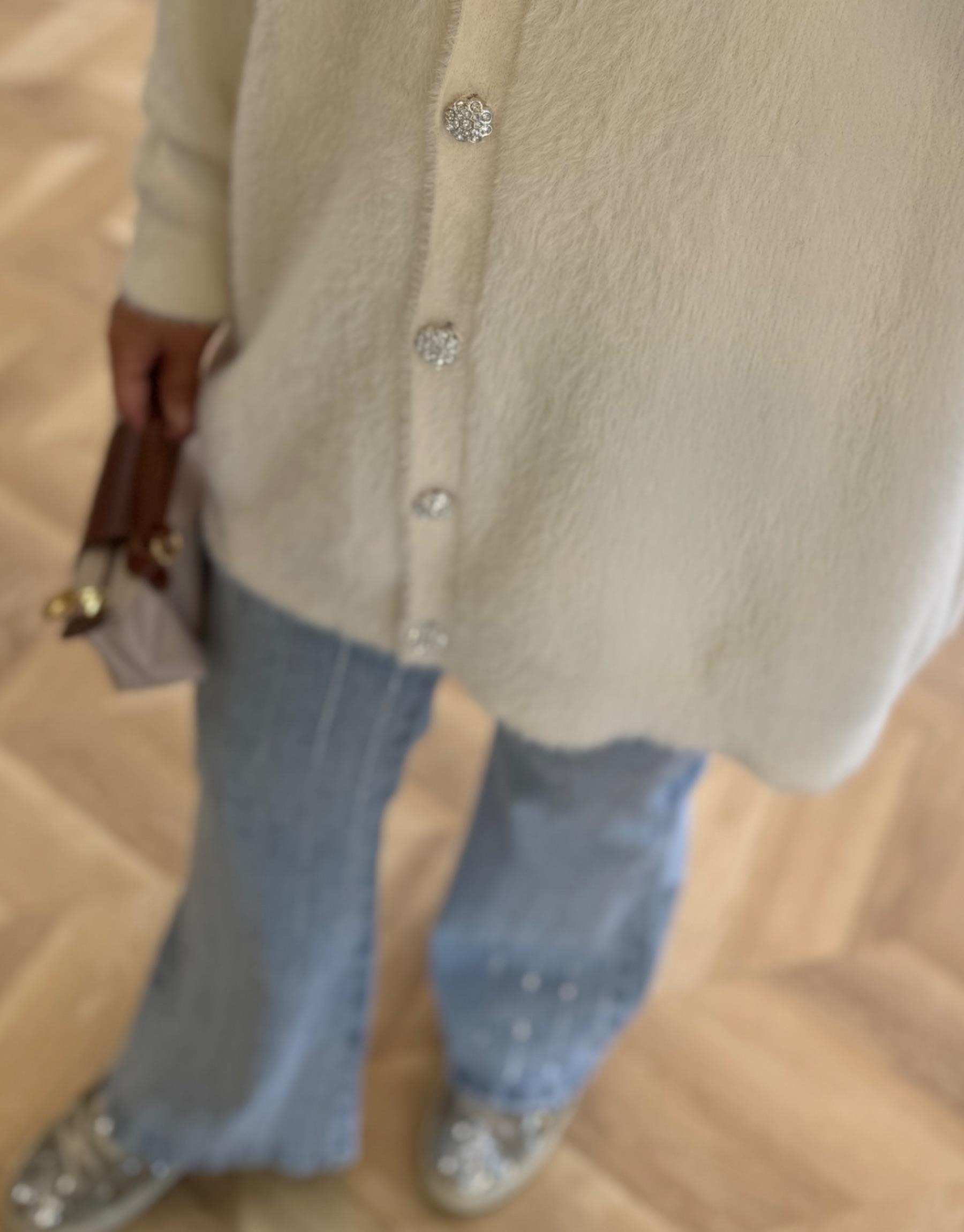 Buz Mavi İspanyol Taşlı Denim Pantolon
