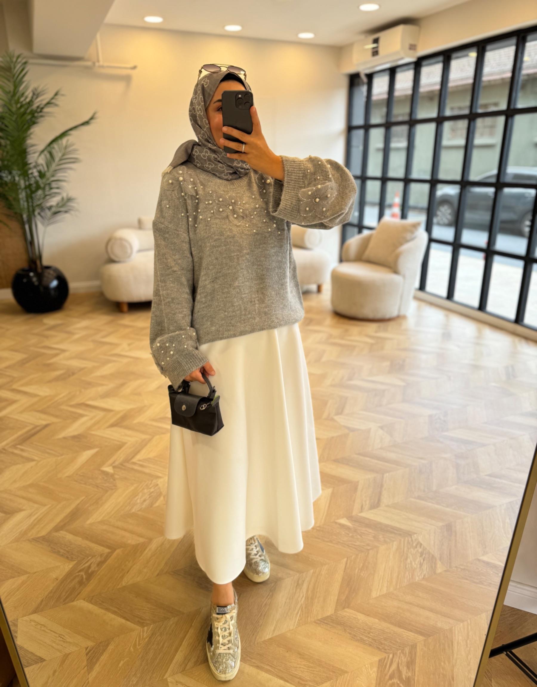 tesettur giyim Gri 2621 Triko Kazak Butiköz