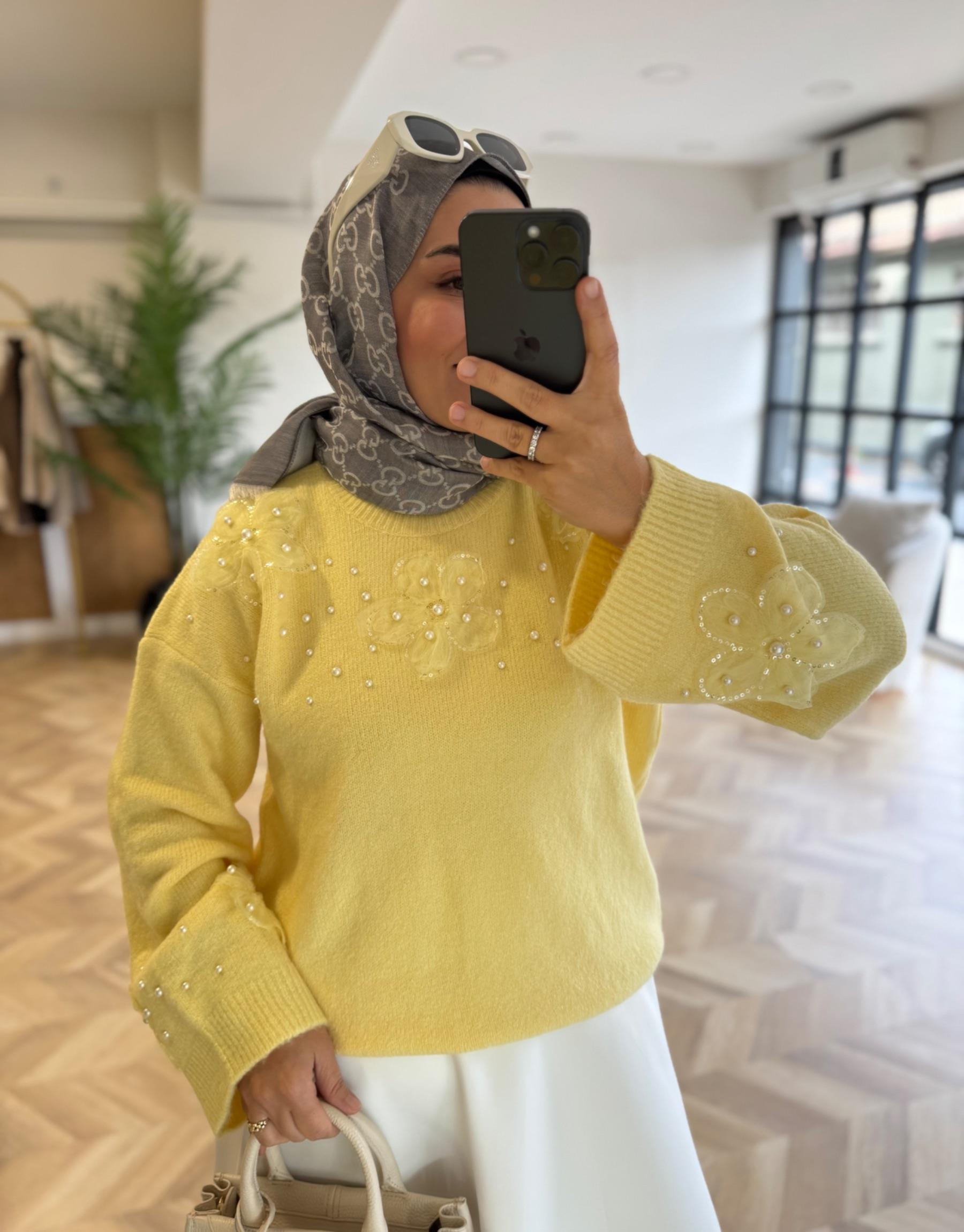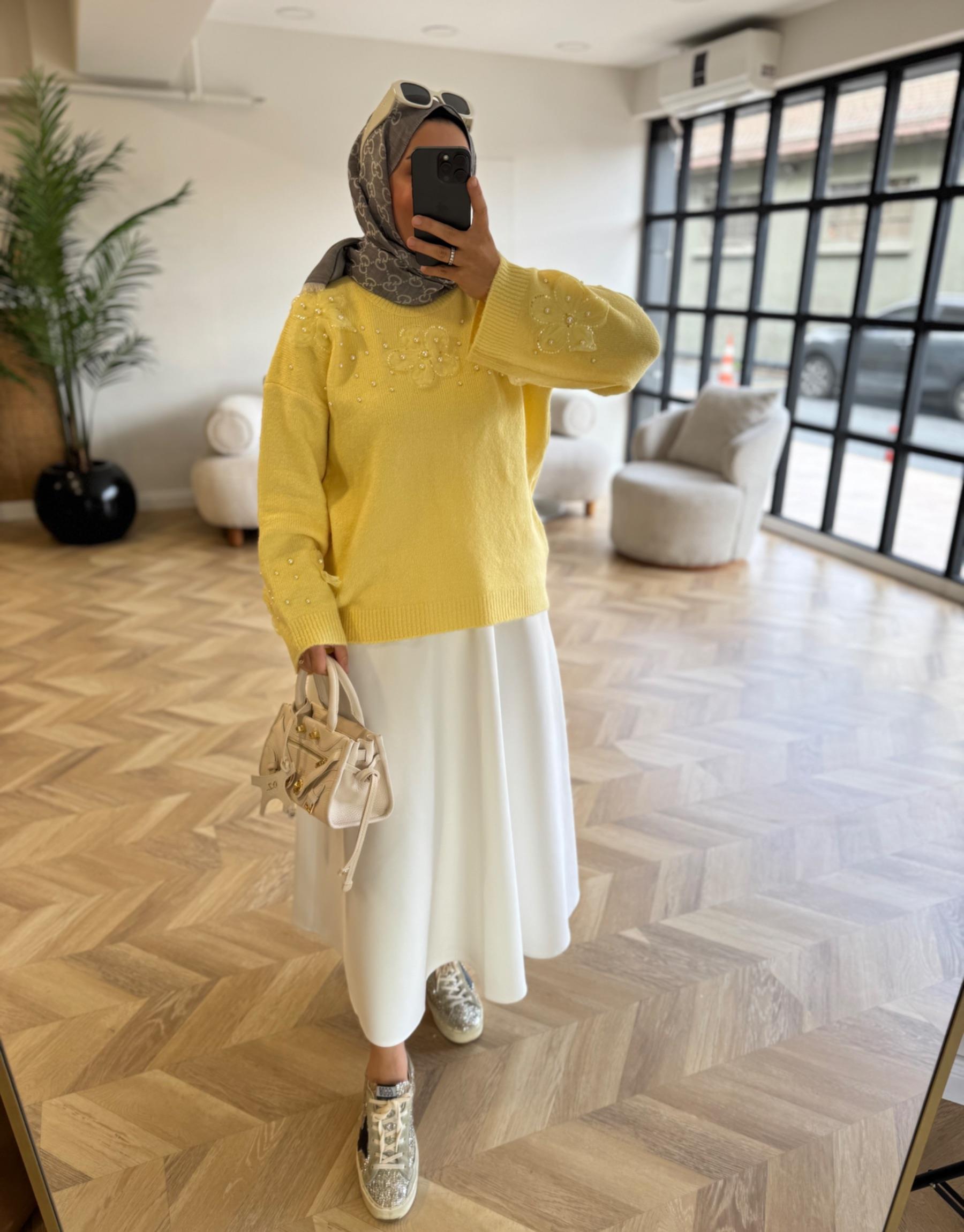 tesettur giyim Sarı 2621 Triko Kazak Butiköz