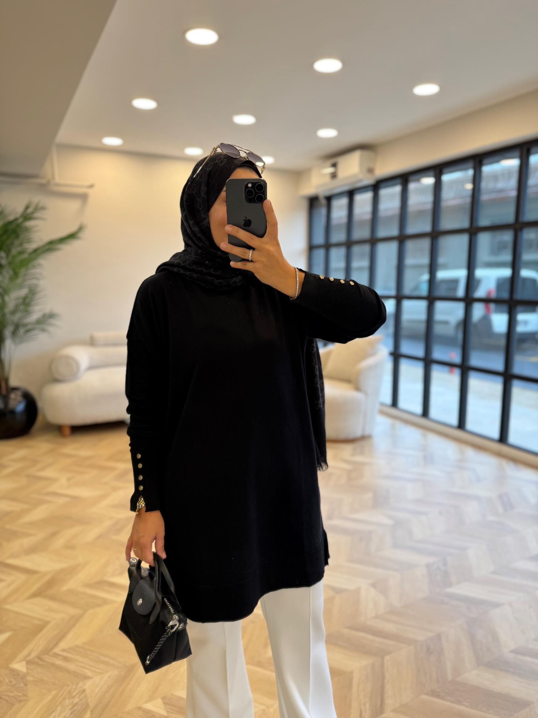 tesettur giyim Siyah 4107 Triko Tunik Butiköz