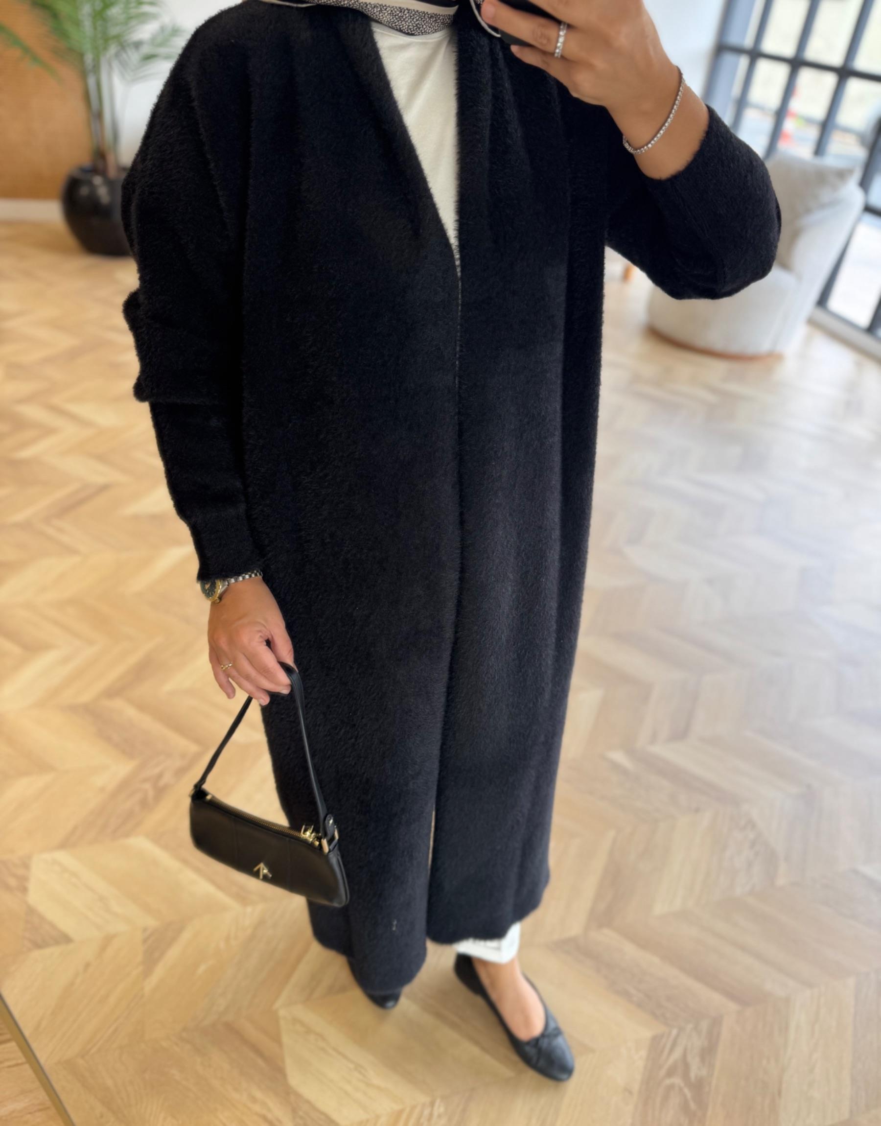 tesettur giyim Siyah Kemerli Angora Uzun Hırka Butiköz