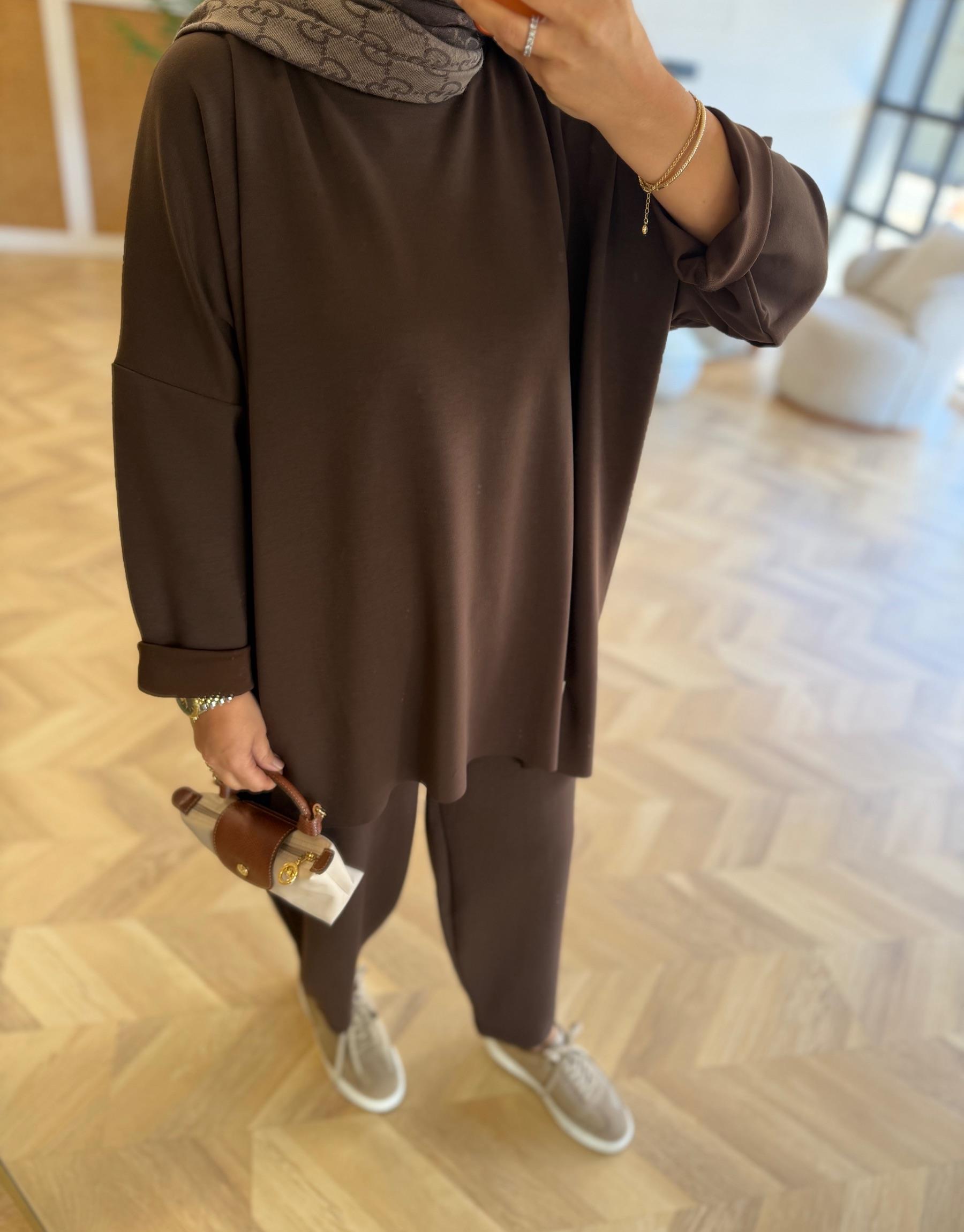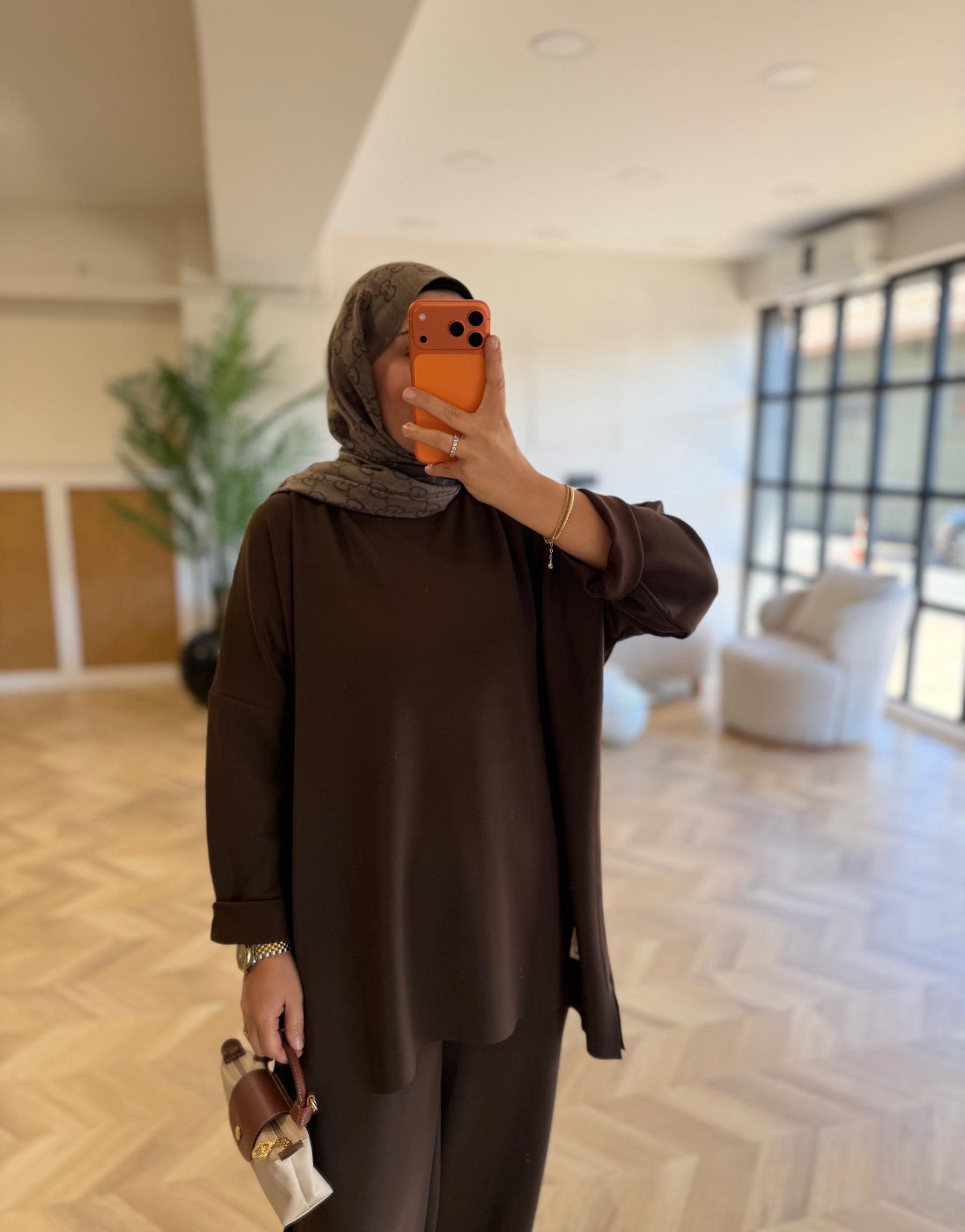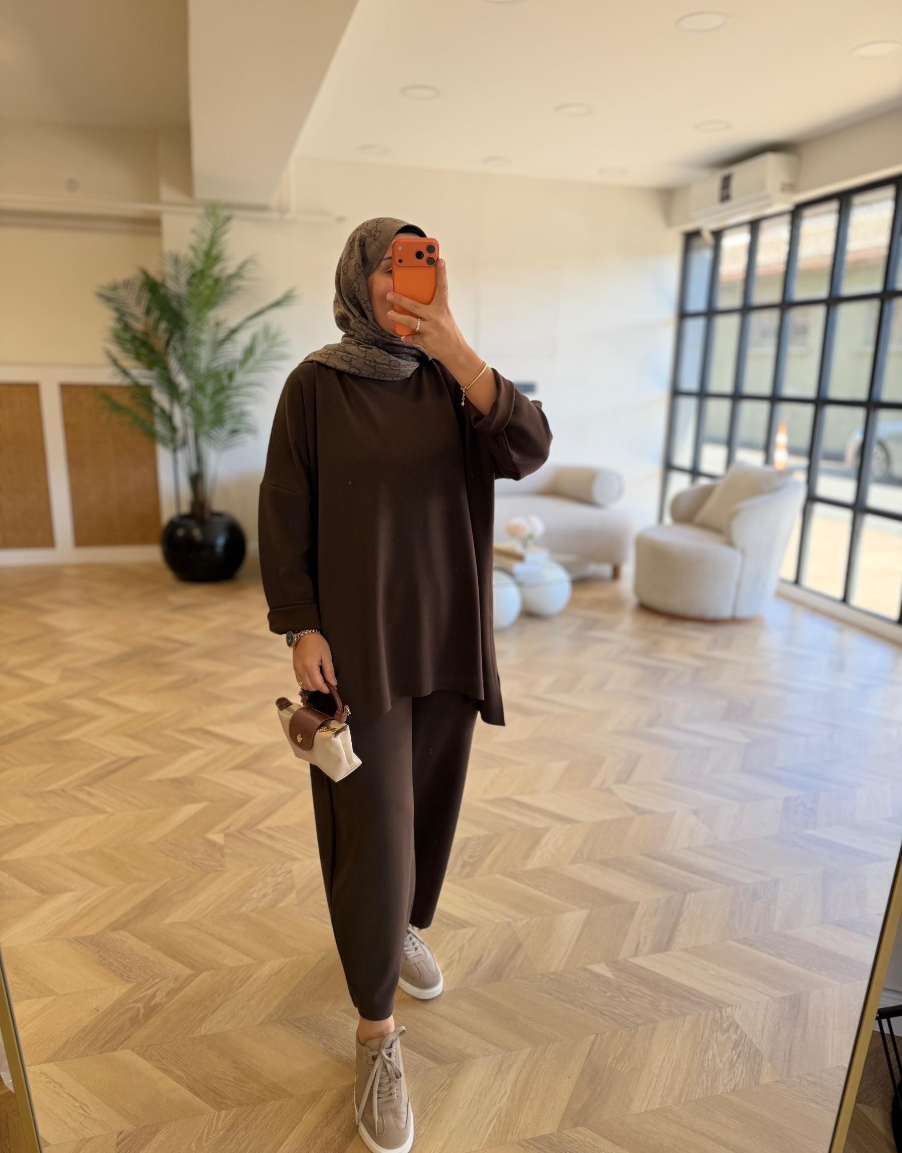 tesettur giyim Acı Kahve Retro Oysh Takım Butiköz