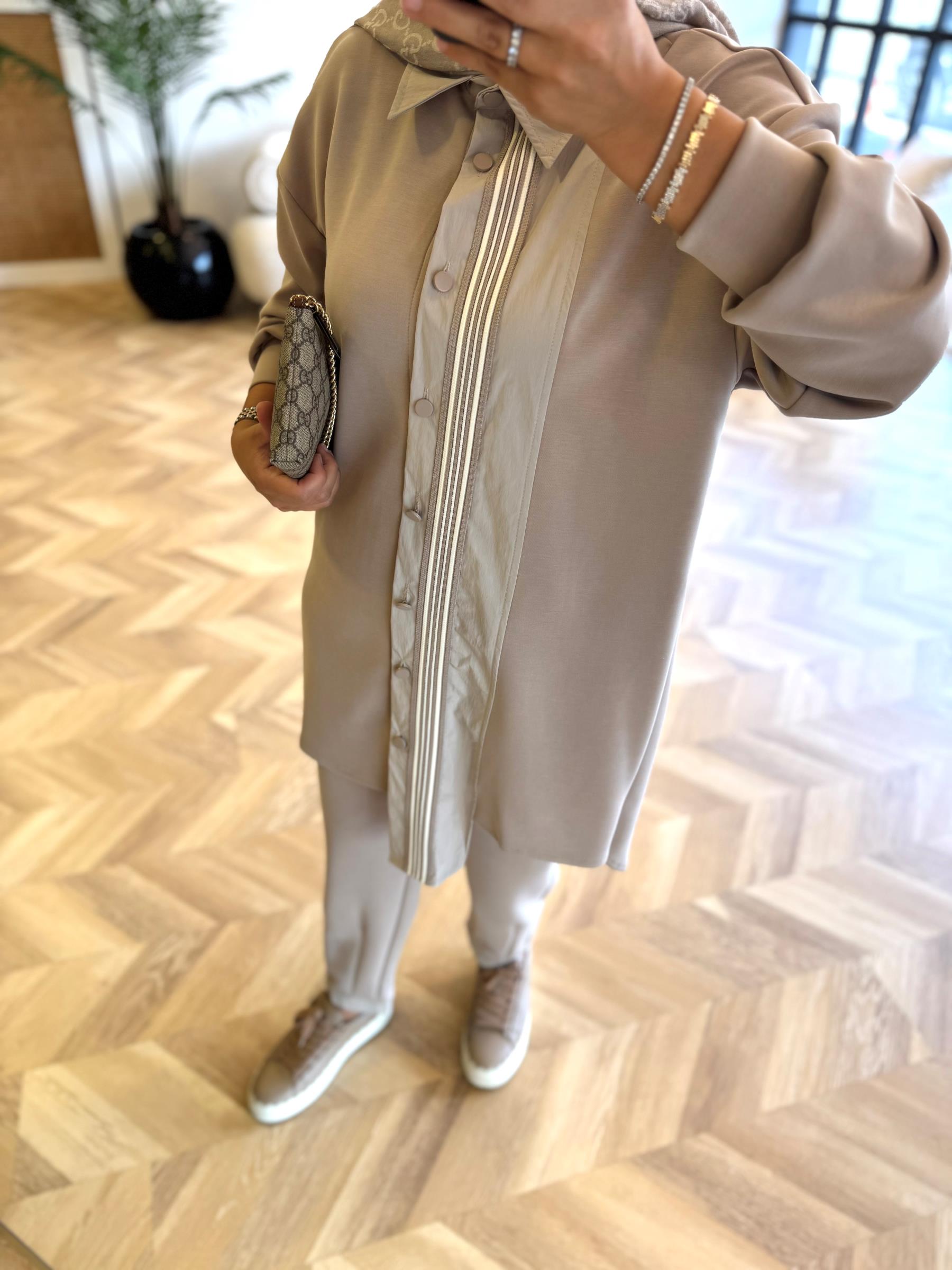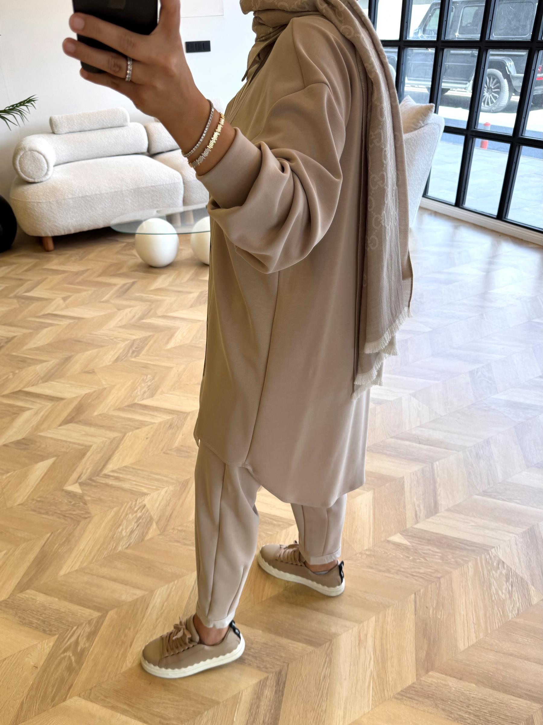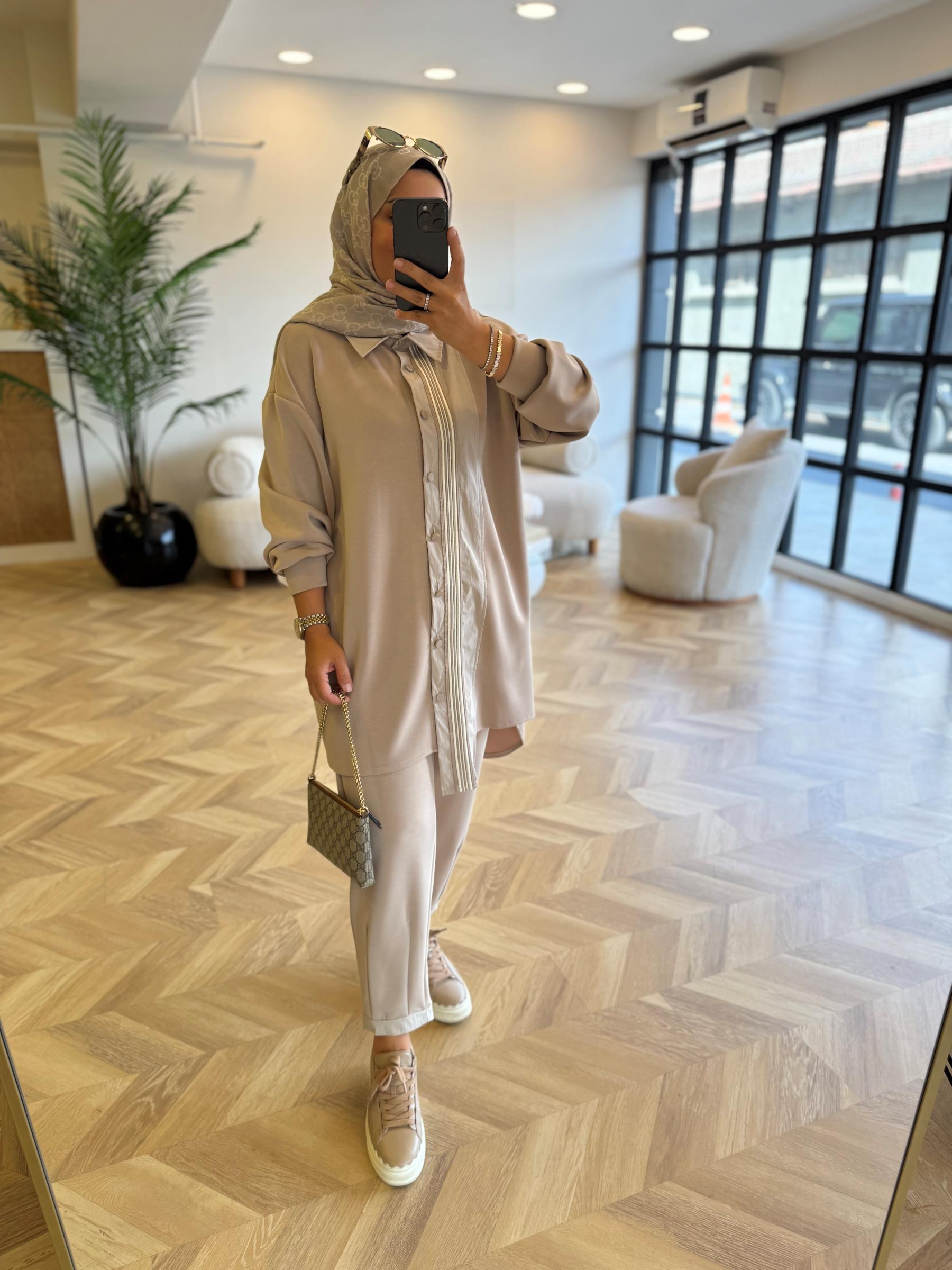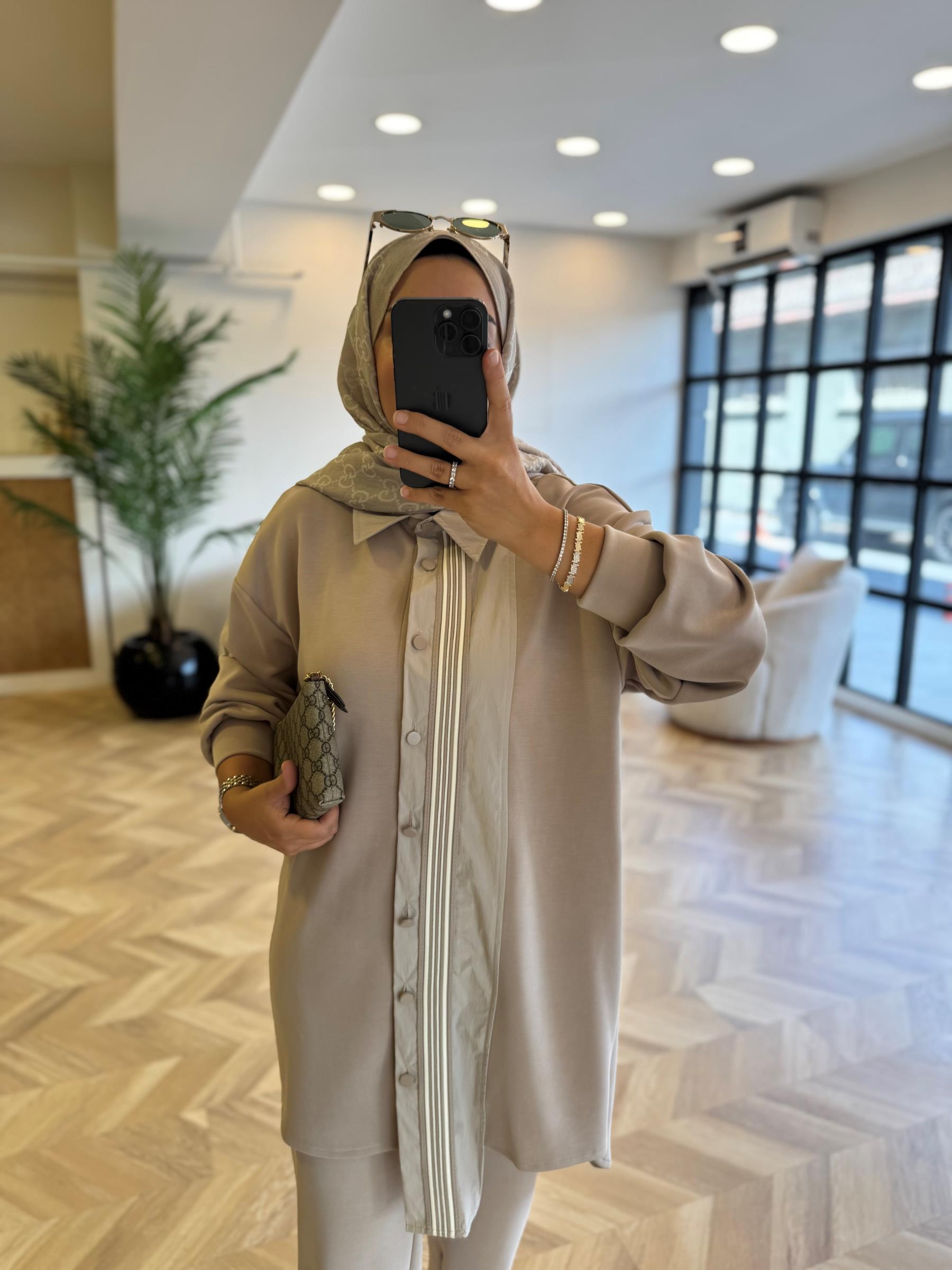 S M : 36-38-40L XL : 42-44 Üst tunik ön boyu: 80 cmÜst tunik arka boyu: 94 cm Pantolon boyu: 97 cm Kumaş: Oysh. kumaştır ( şerit detayı kısmı paraşüt kumaştandır)