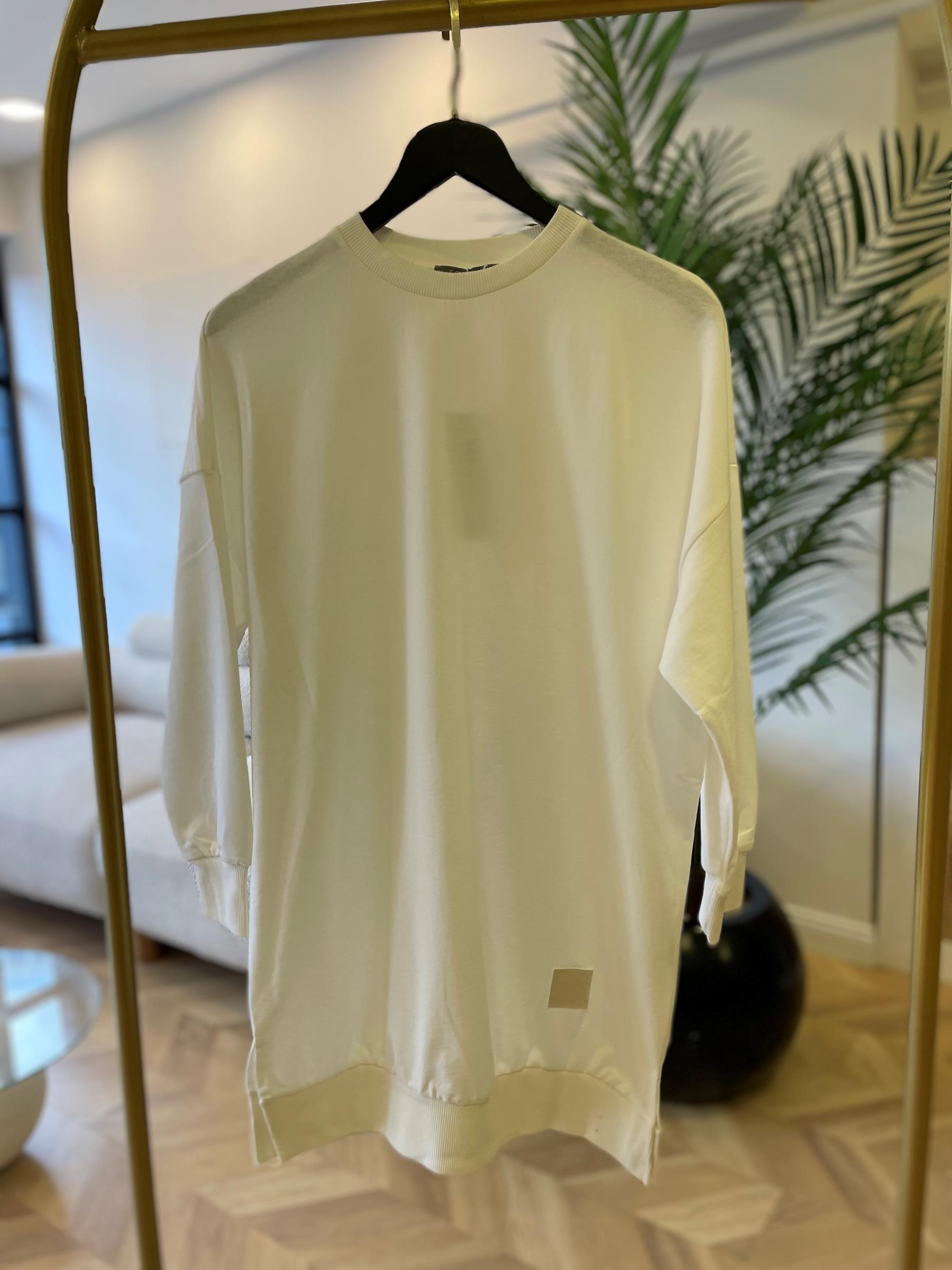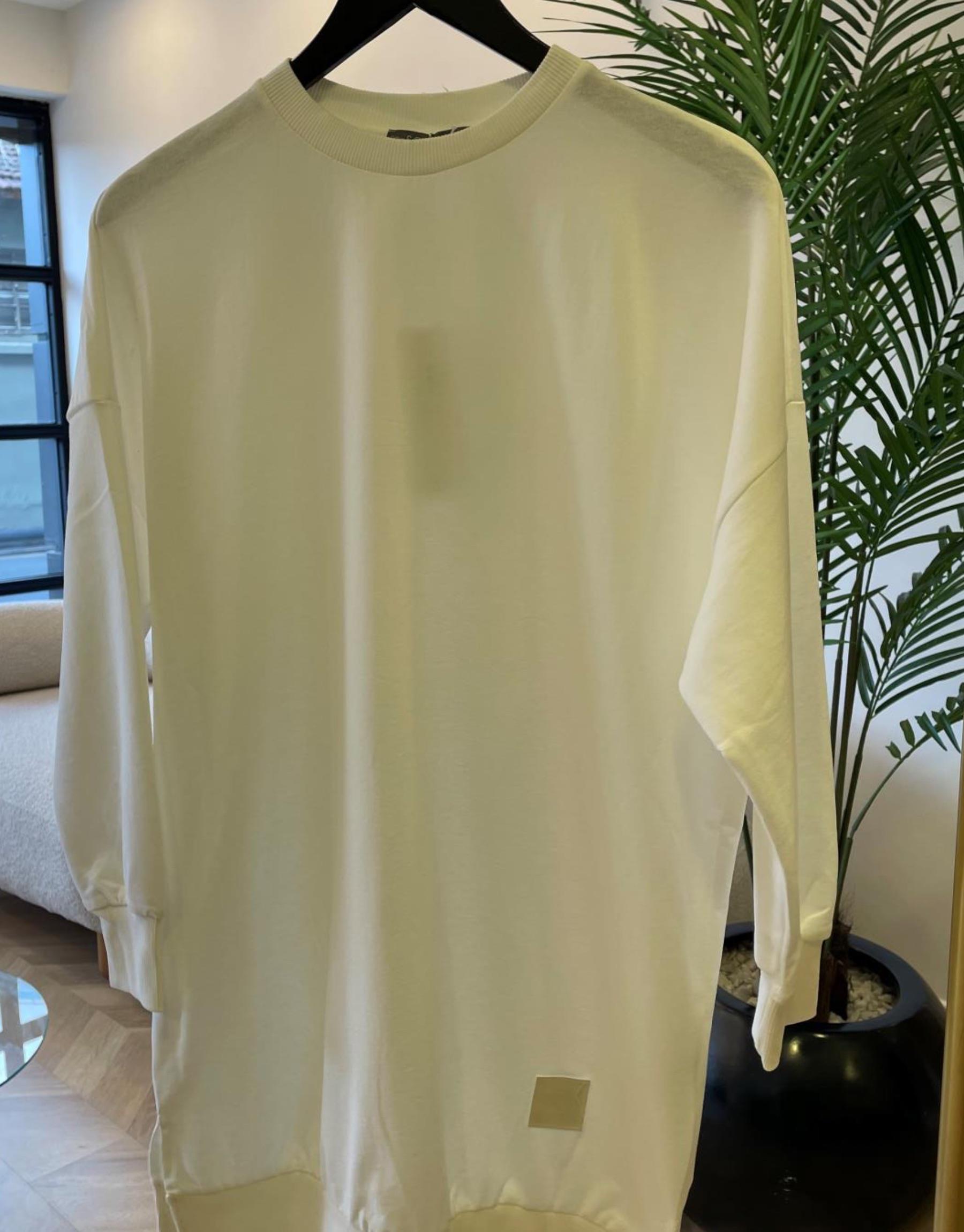 Beyaz Kol Pile Detaylı Oversize Sweatshırt