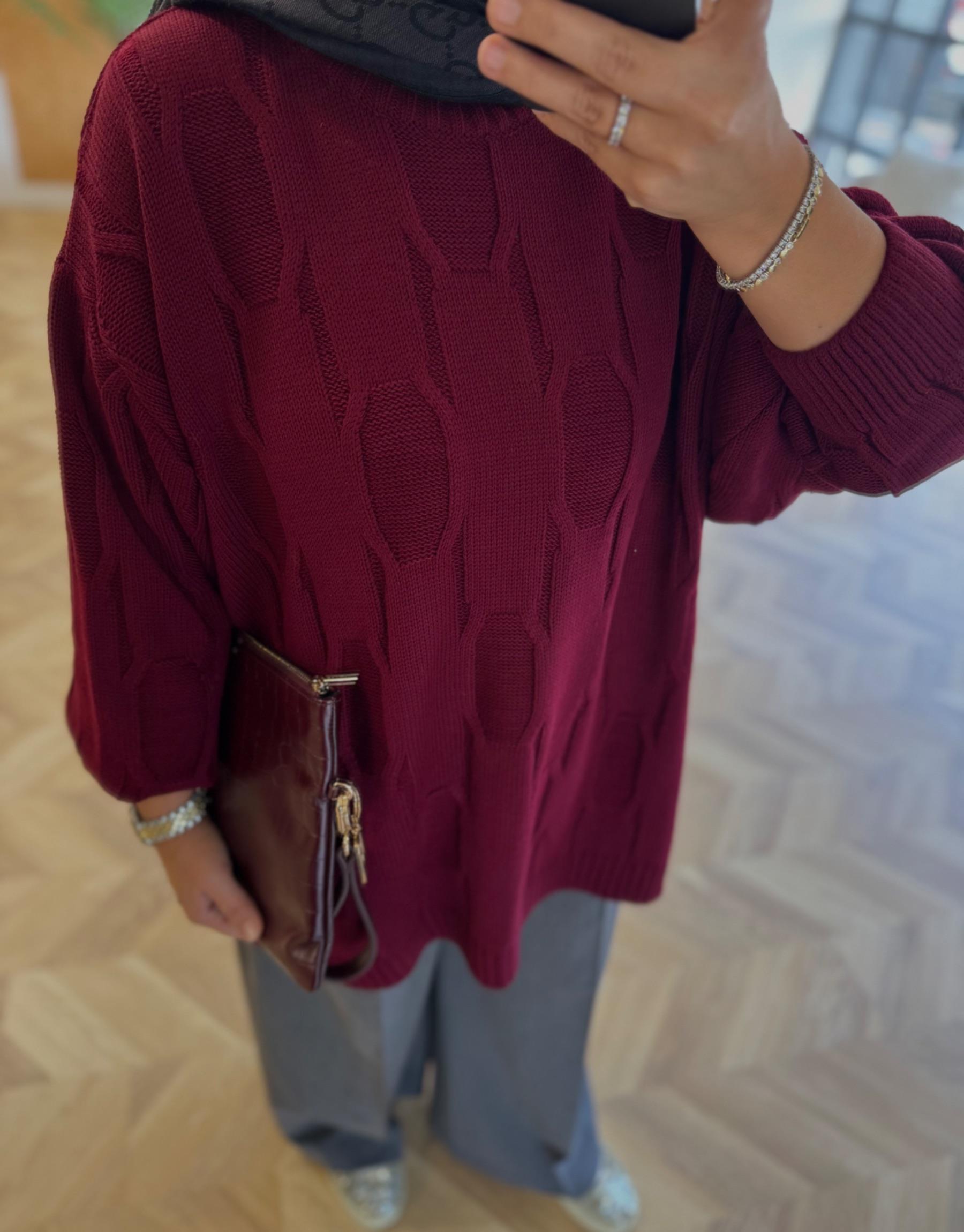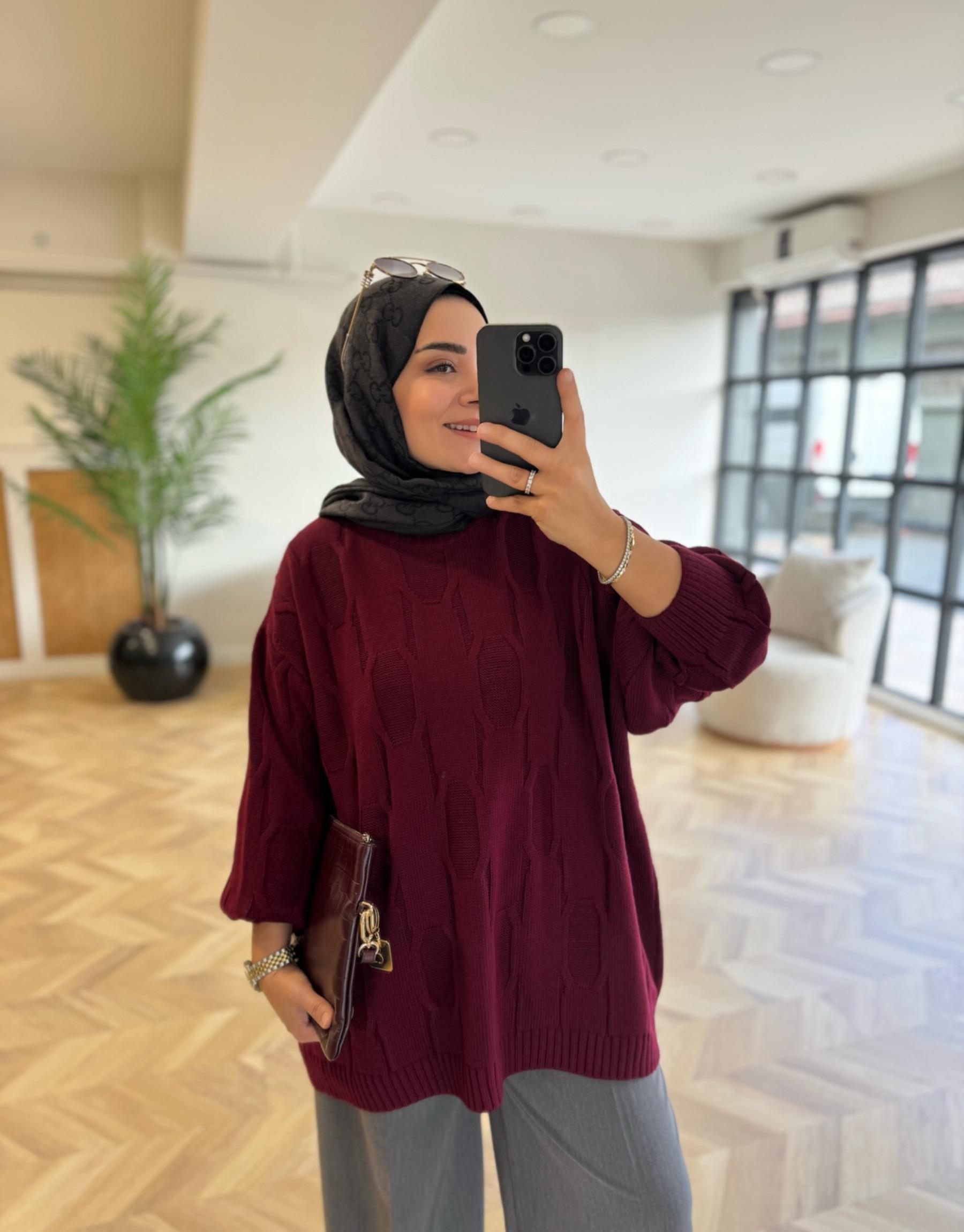 tesettur giyim Bordo 50743 Triko Kazak Butiköz