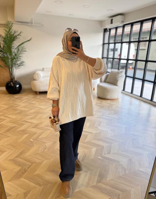 tesettur giyim Ekru 44155 Yumoş Triko Kazak Butiköz