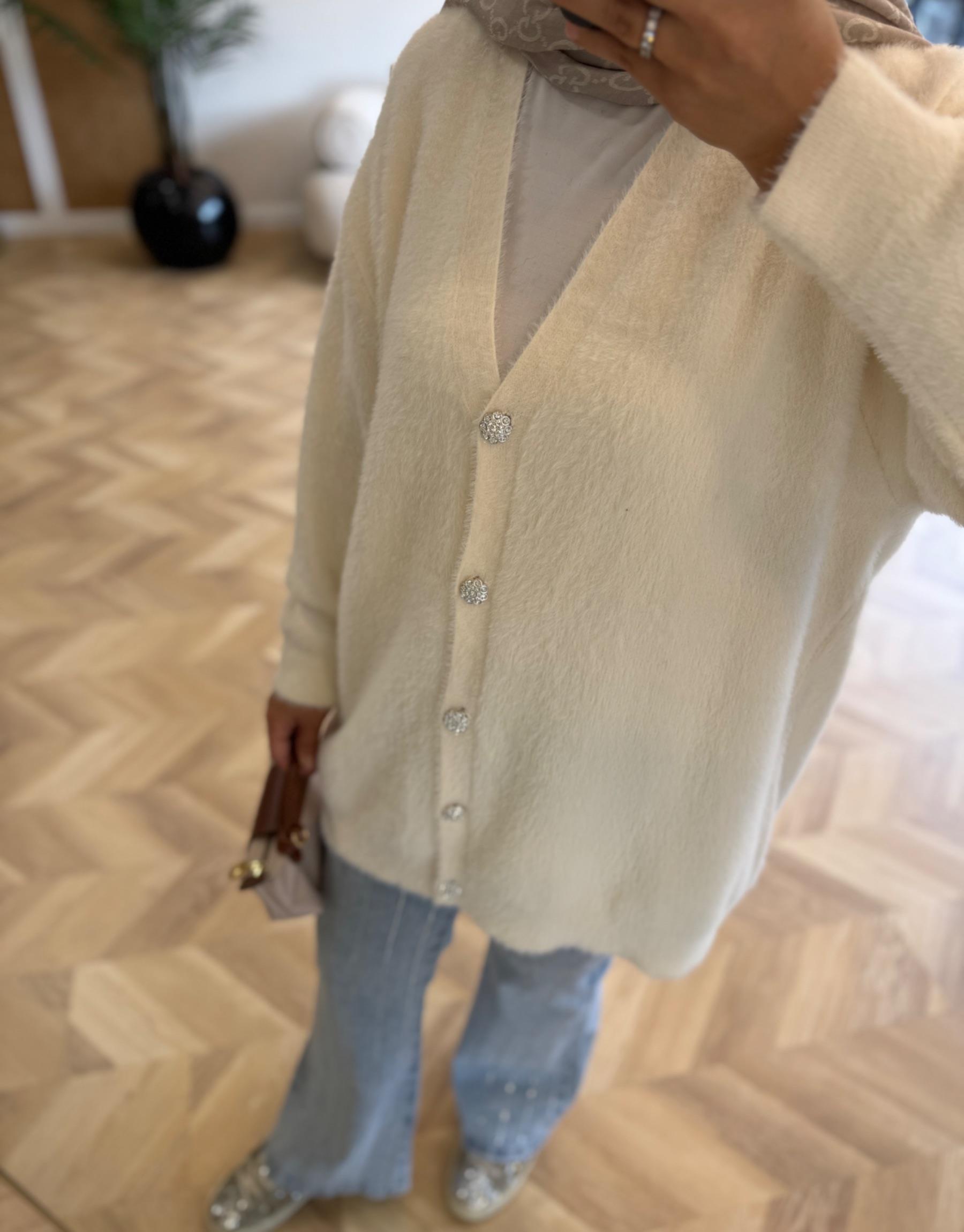 tesettur giyim Ekru 80258 Yumoş Triko Hırka Butiköz