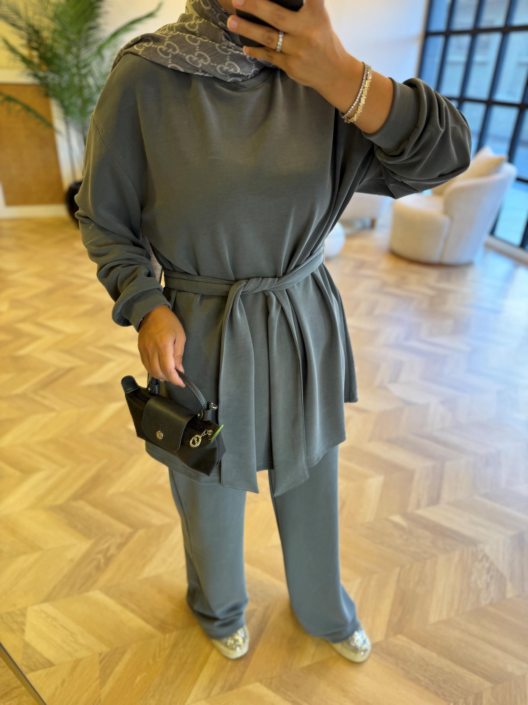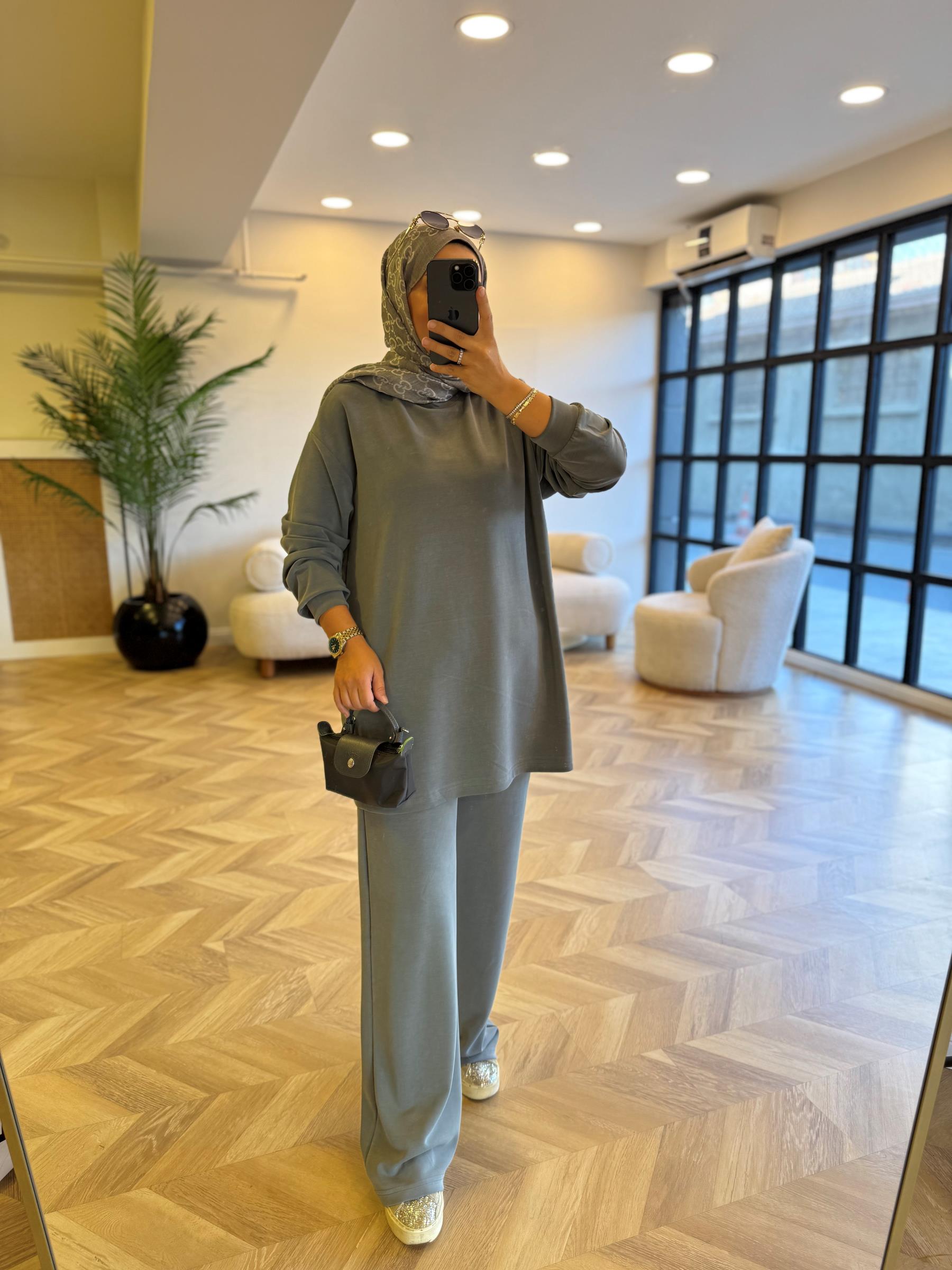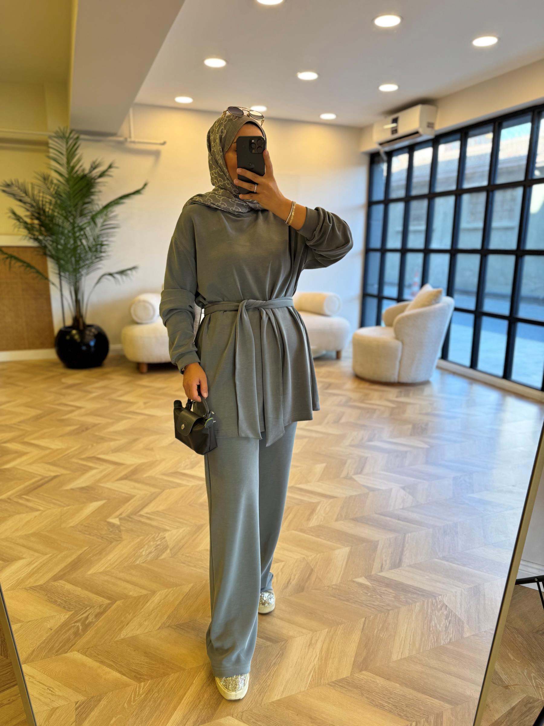 1-2 olarak bedenlidir 1 beden: 36-38-402 beden: 42-44-46 Üst boy: 82 cmPantolon boy: 110 cmKumaş: Oysh. kumaştır Seyyar kemeri mevcuttur