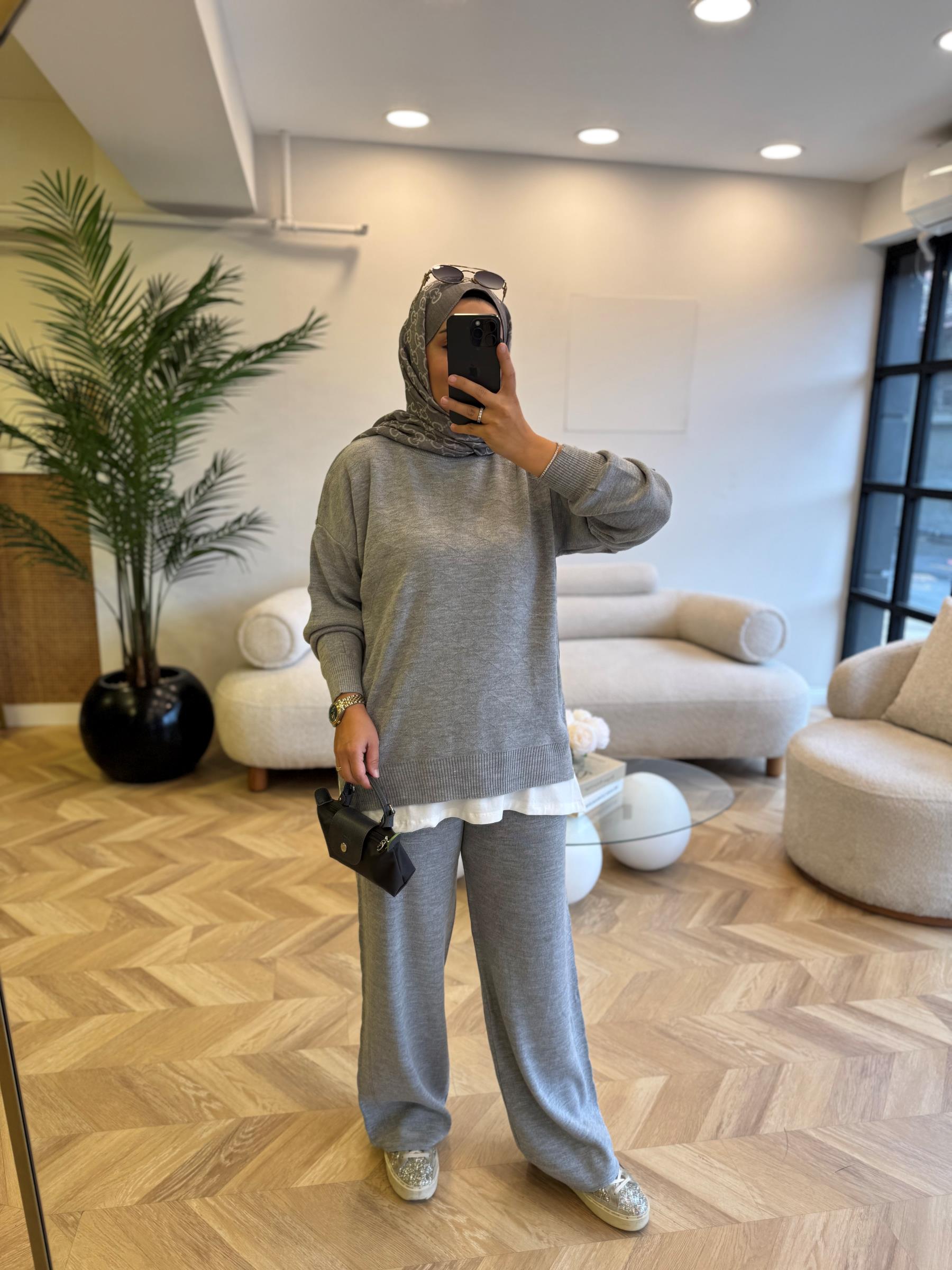 tesettur giyim Gri 4129 Triko Takım Butiköz