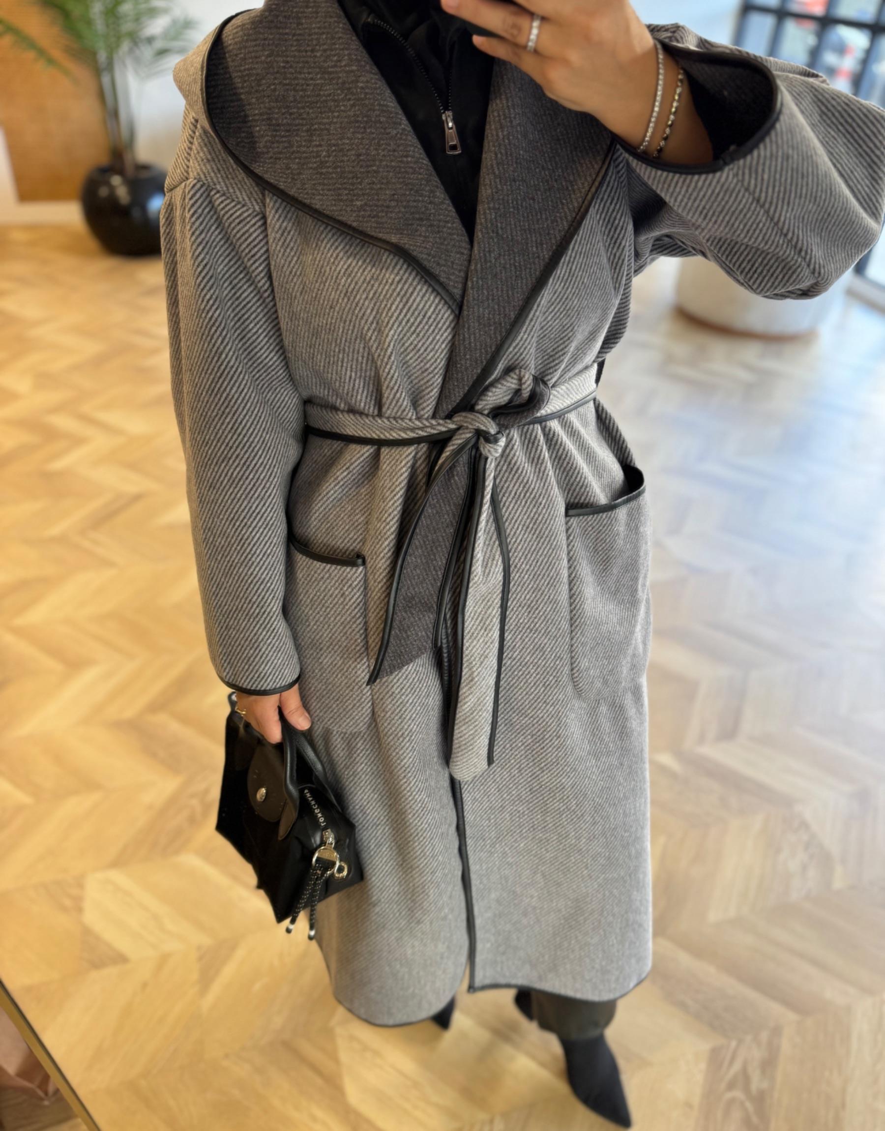 tesettur giyim Gri Kapşonlu Palermo Kaban Butiköz