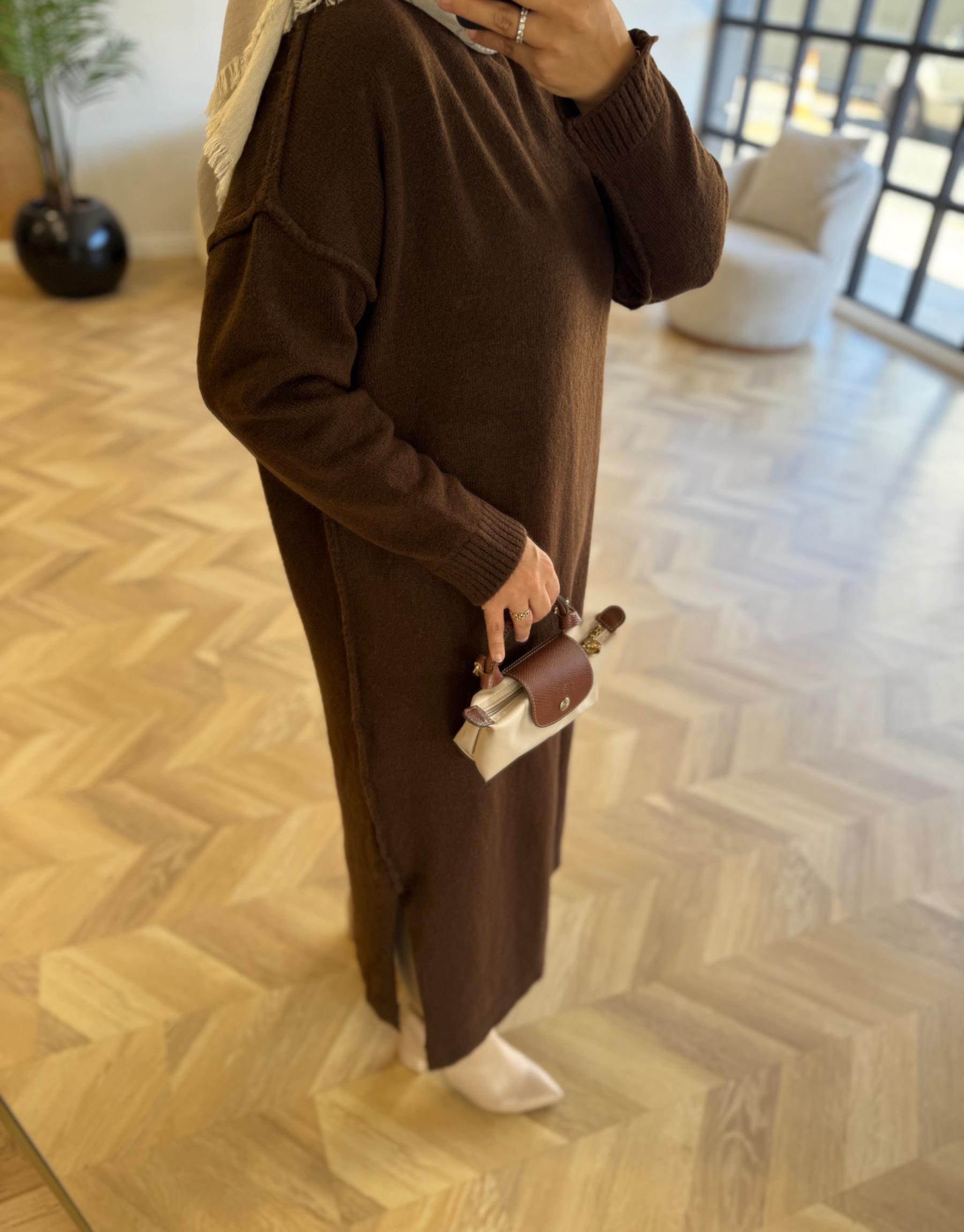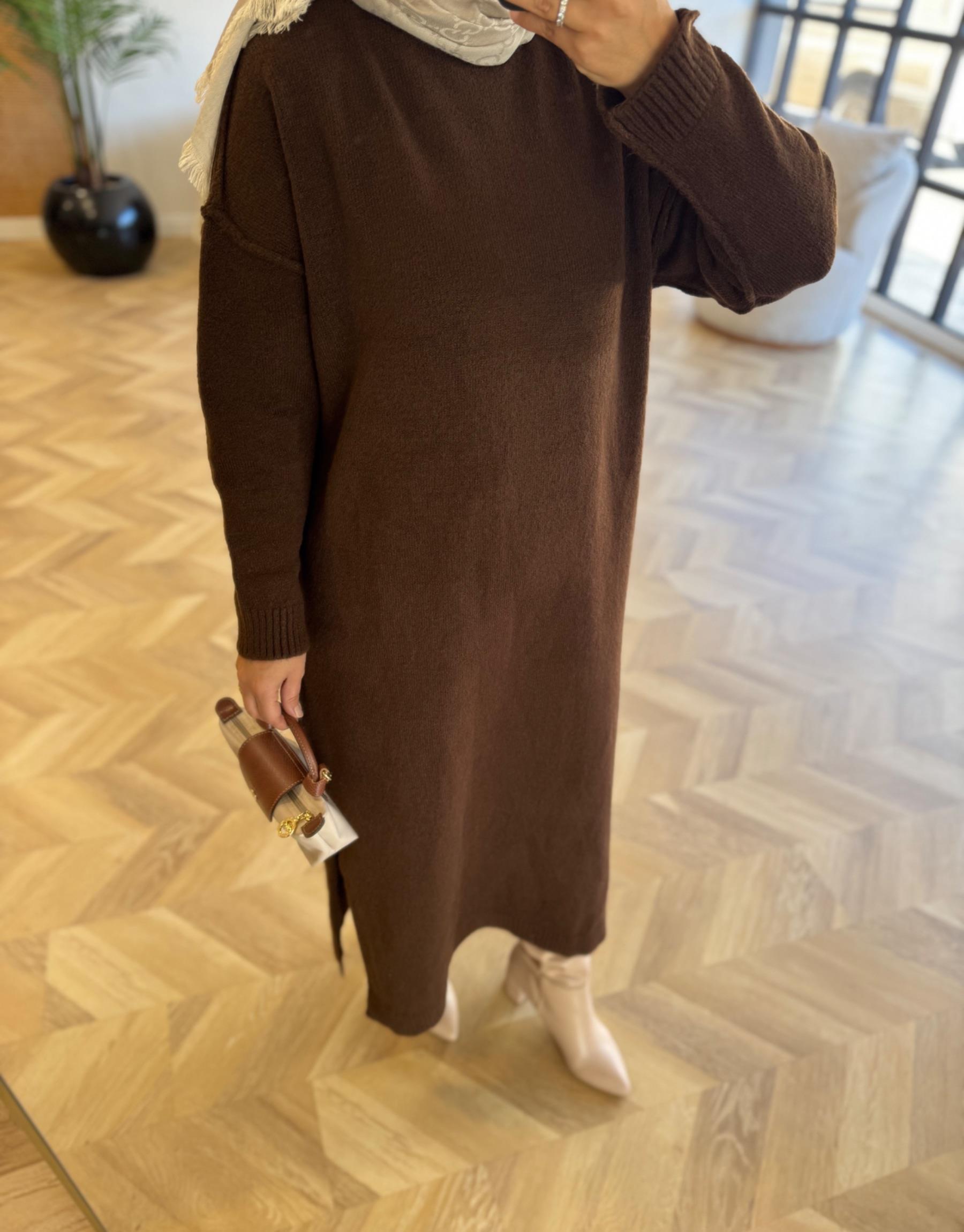 tesettur giyim Kahve 2514 Triko Elbise Butiköz
