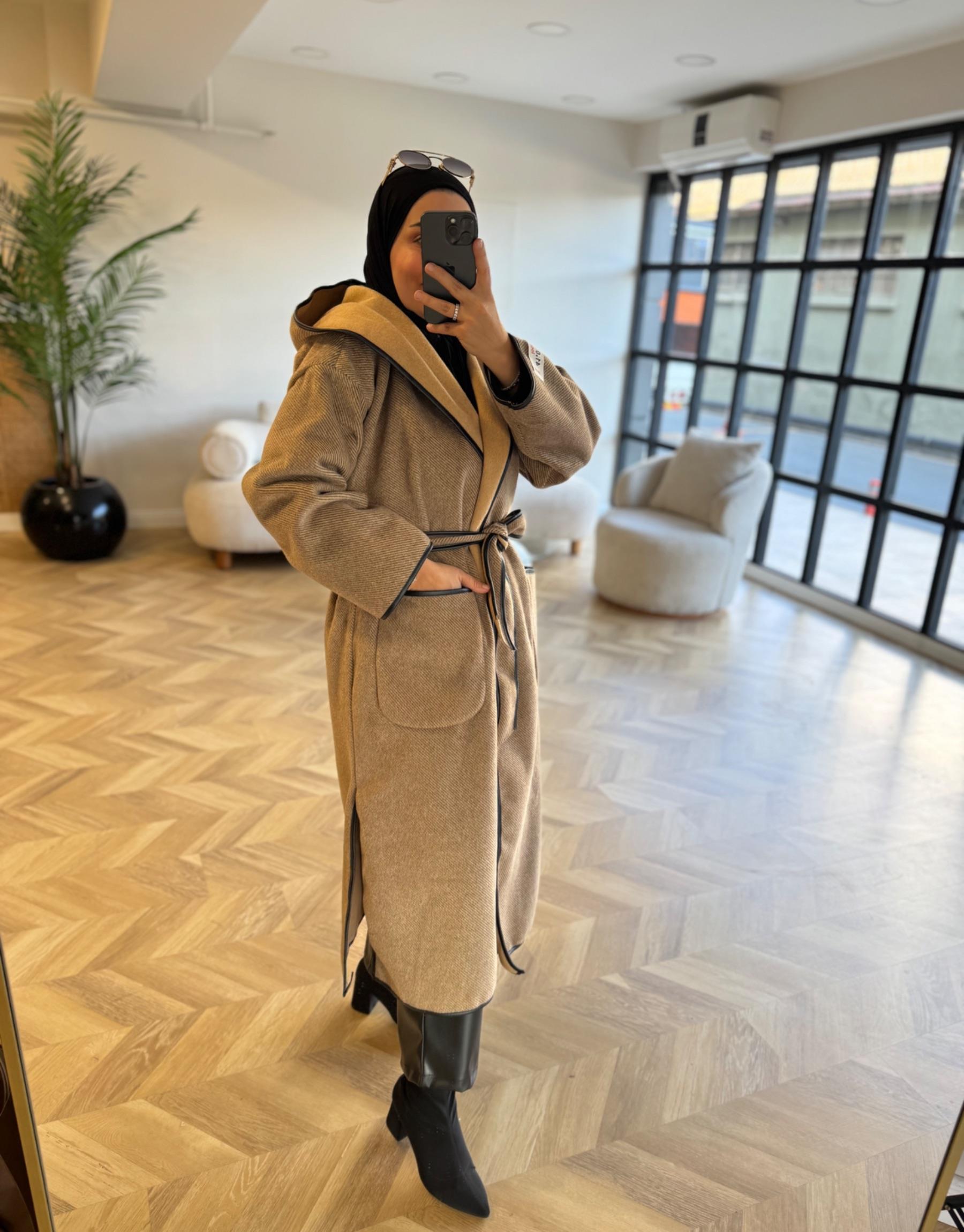 tesettur giyim Kahve Kapşonlu Palermo Kaban Butiköz