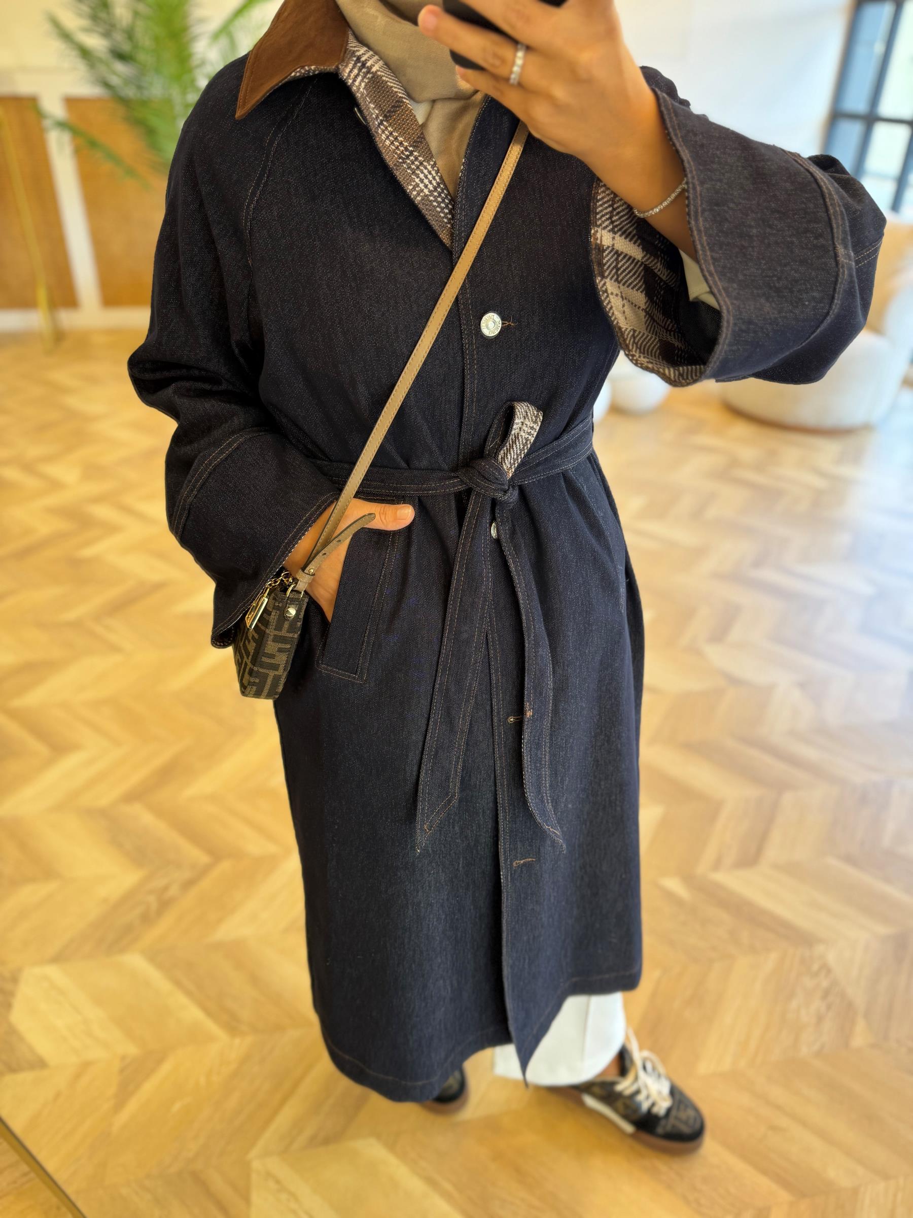 tesettur giyim Lacivert Denim Trench Butiköz