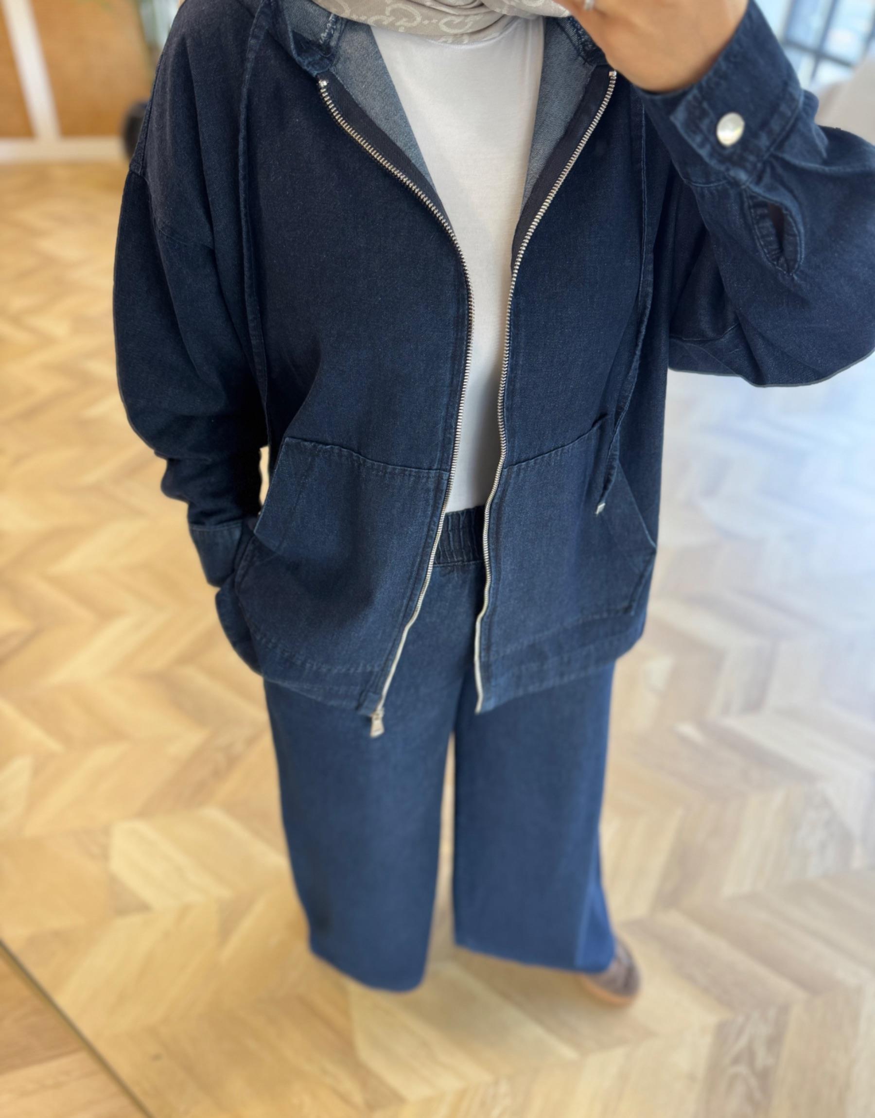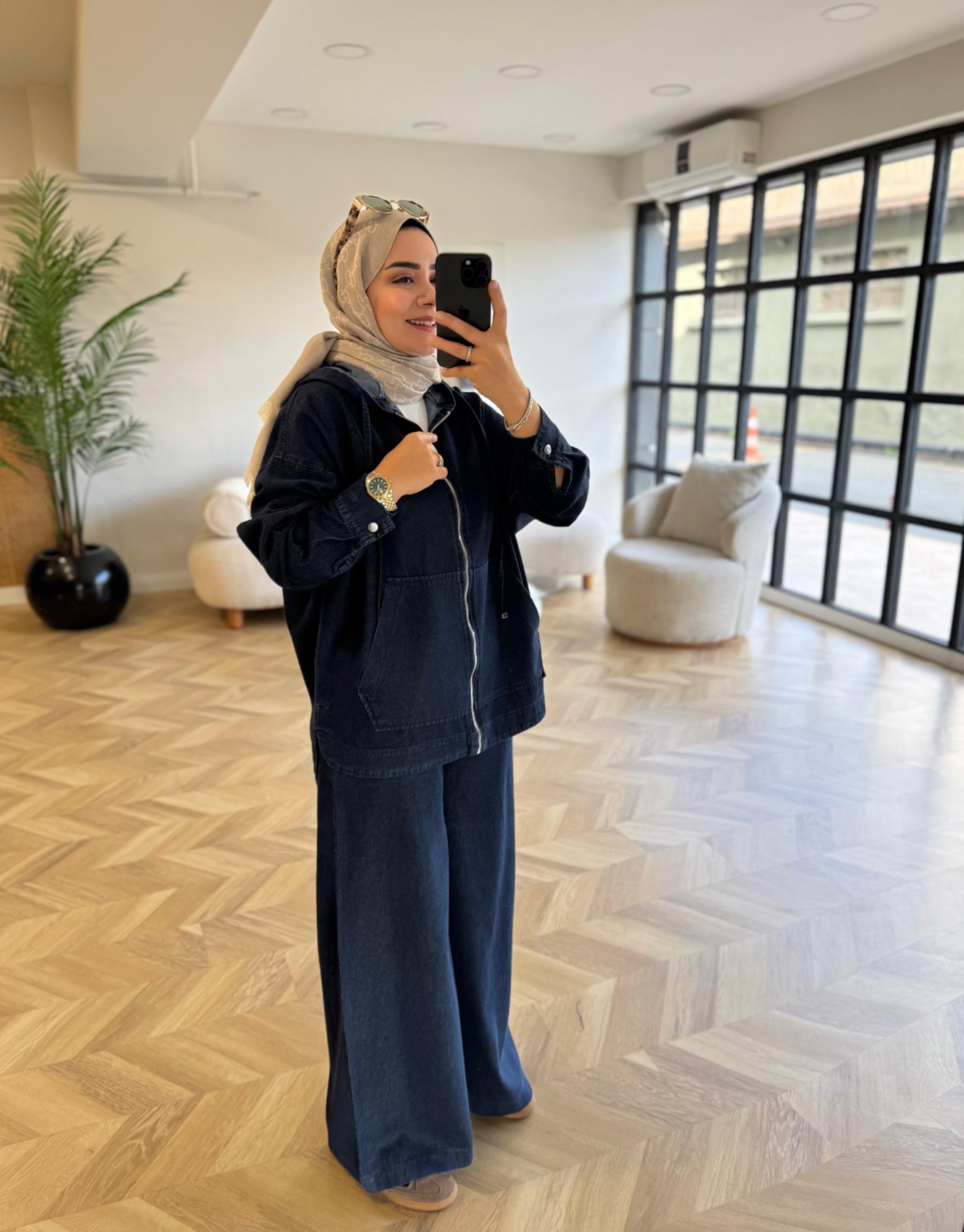 tesettur giyim Lacivert Lima Pantolonlu Denim Takım Butiköz