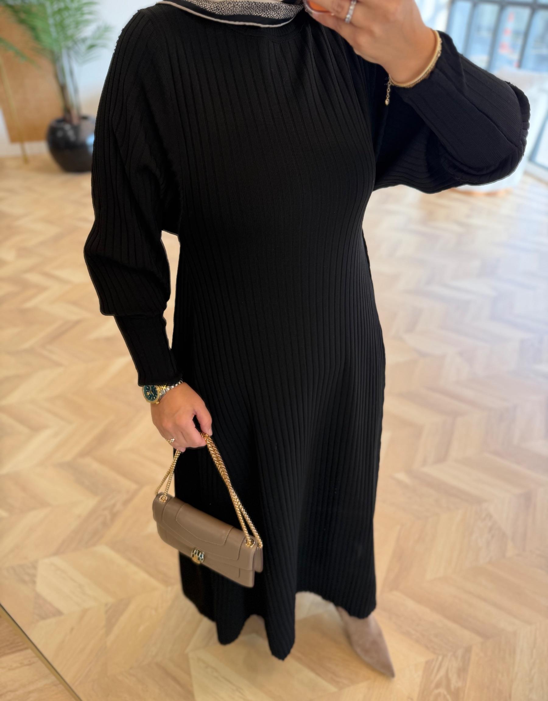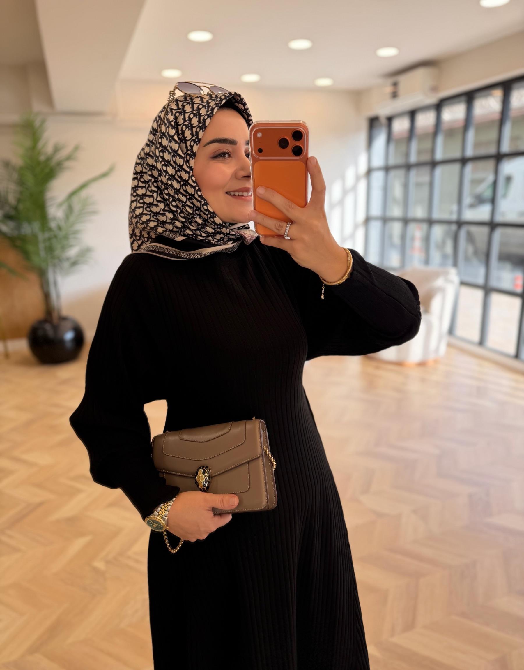 tesettur giyim Siyah 1504 Triko Elbise Butiköz