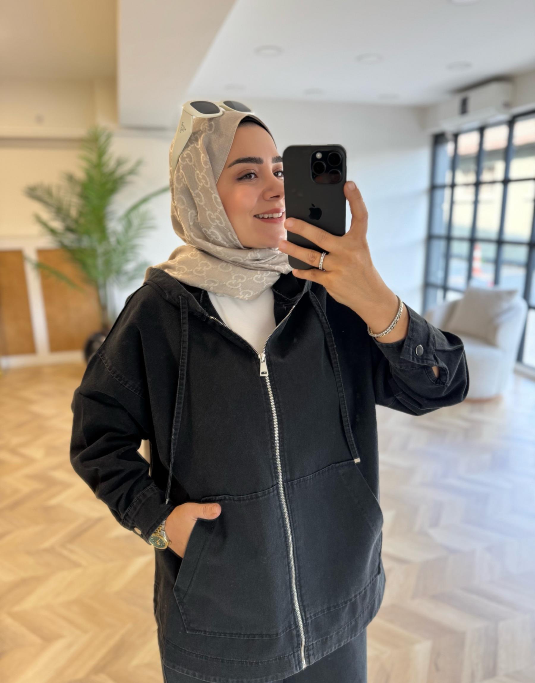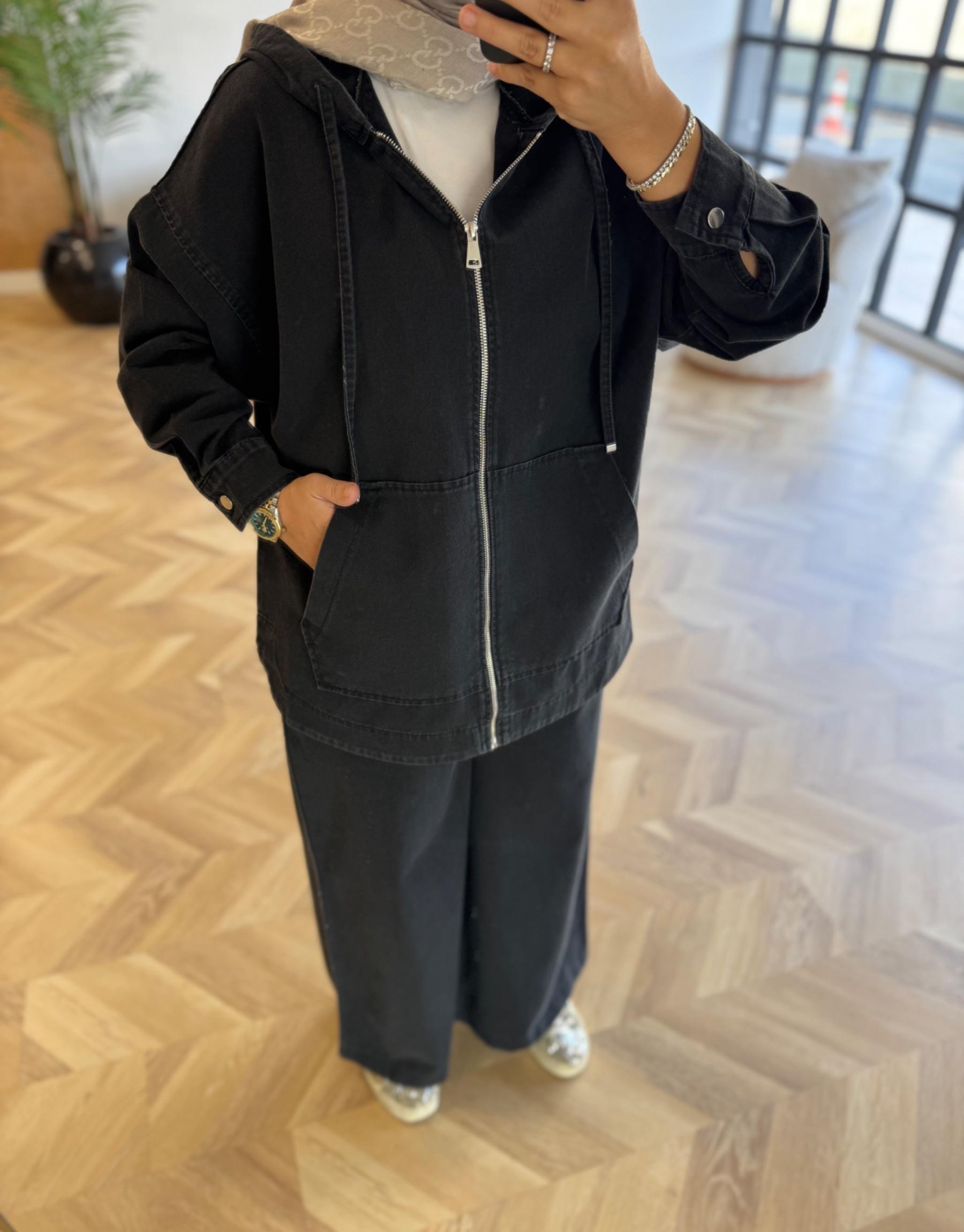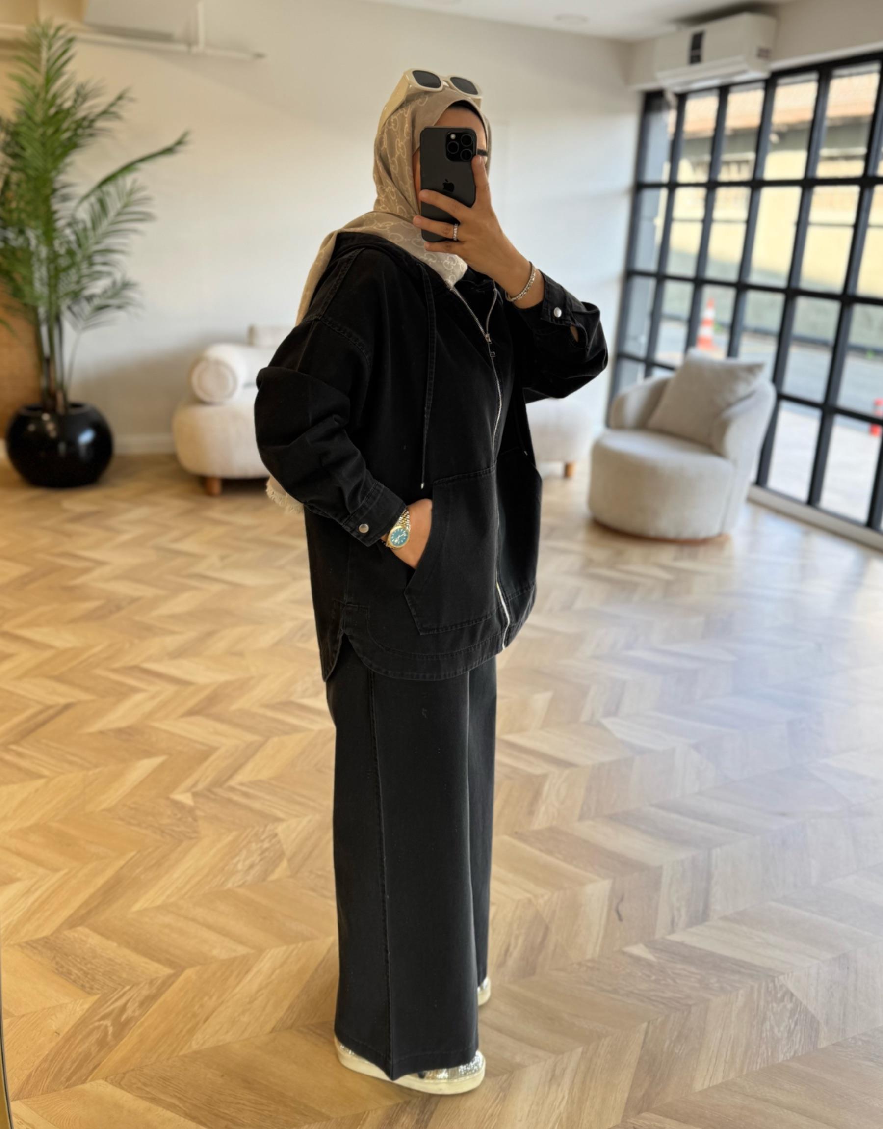 tesettur giyim Siyah Lima Pantolonlu Denim Takım Butiköz